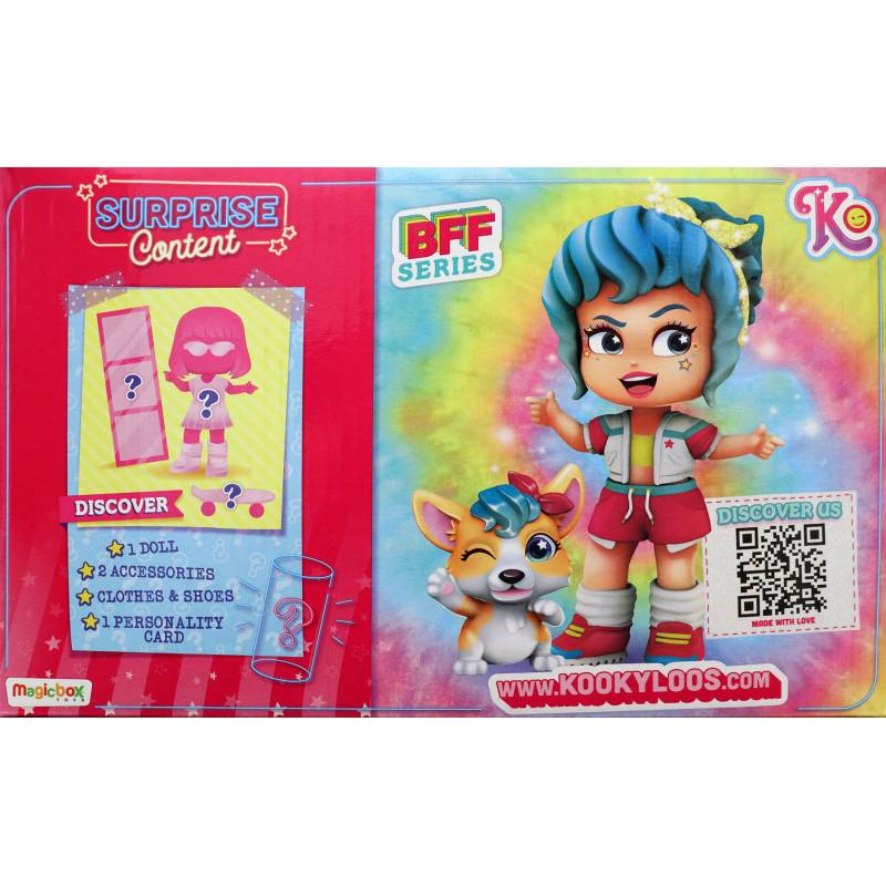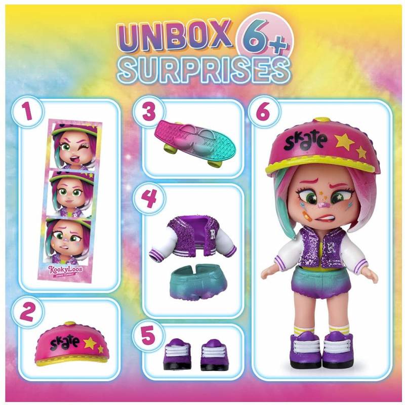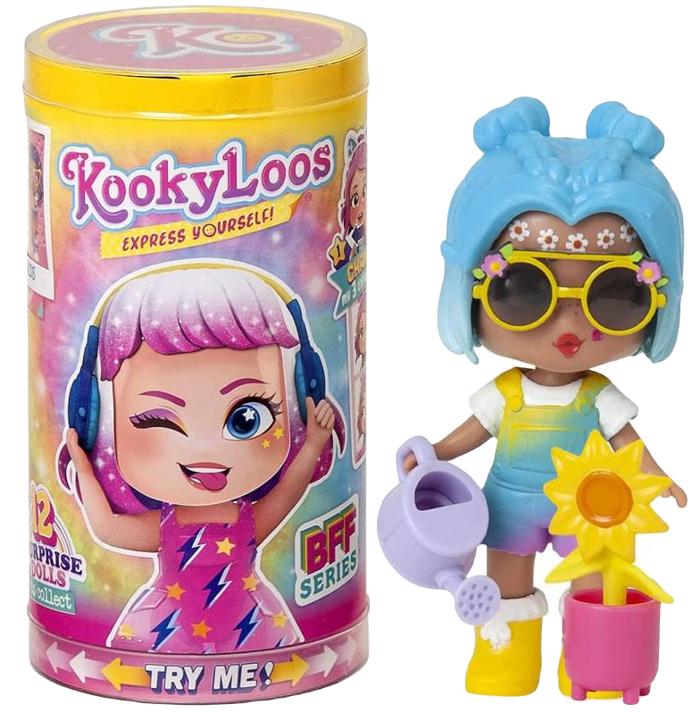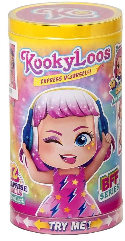 KookyLoos to nowość na rynku zabawek! Małe laleczki są jedyne w swoim rodzaju, posiadają aż trzy ekspresję twarzy, dzięki obracanej głowie można ją szybko zmienić. Do zebrania 12 różnych laleczek, które dzielą się na 4 grupy: SIS T.E.A.M., Creative Hearts, Urban Crew oraz Sugar Sweeties. Jaką postać znajdziesz w środku? Nikt nie wie co jest schowane. Różne akcesoria sprawiają, że możemy reagować zabawką na różne sytuacje.