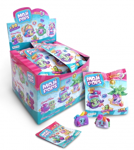 Figurki Moji Pops to kolekcjonerskie figurki dedykowane dziewczynkom od 4 roku życia, będące odpowiednikiem popularnej serii Super Zings. Moji Pops to emotki przypominające przedmioty znane z życia codziennego z dwustronnymi buźkami ukazującymi różne emocje: smutek, radość, złość itp. Ich buźki są wyciągane-możesz je odwrócić lub przełożyć do innej figurki tworząc w ten sposób nowe postacie. Zabawka rozwija wyobraźnię dziecka, kreatywność oraz empatię.