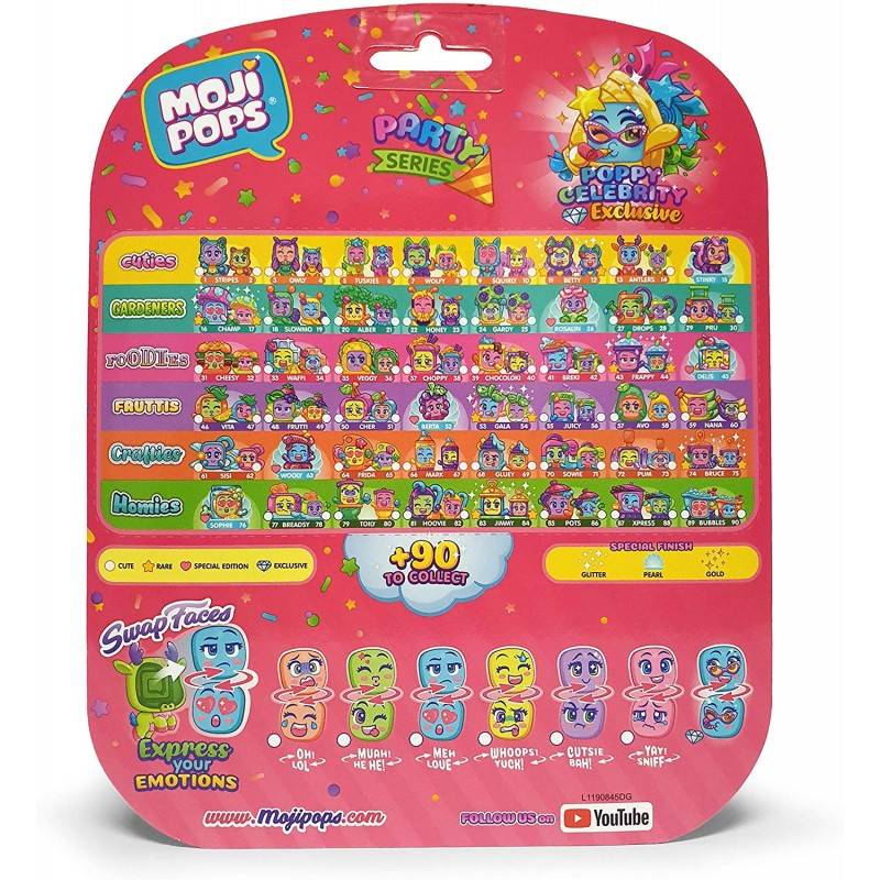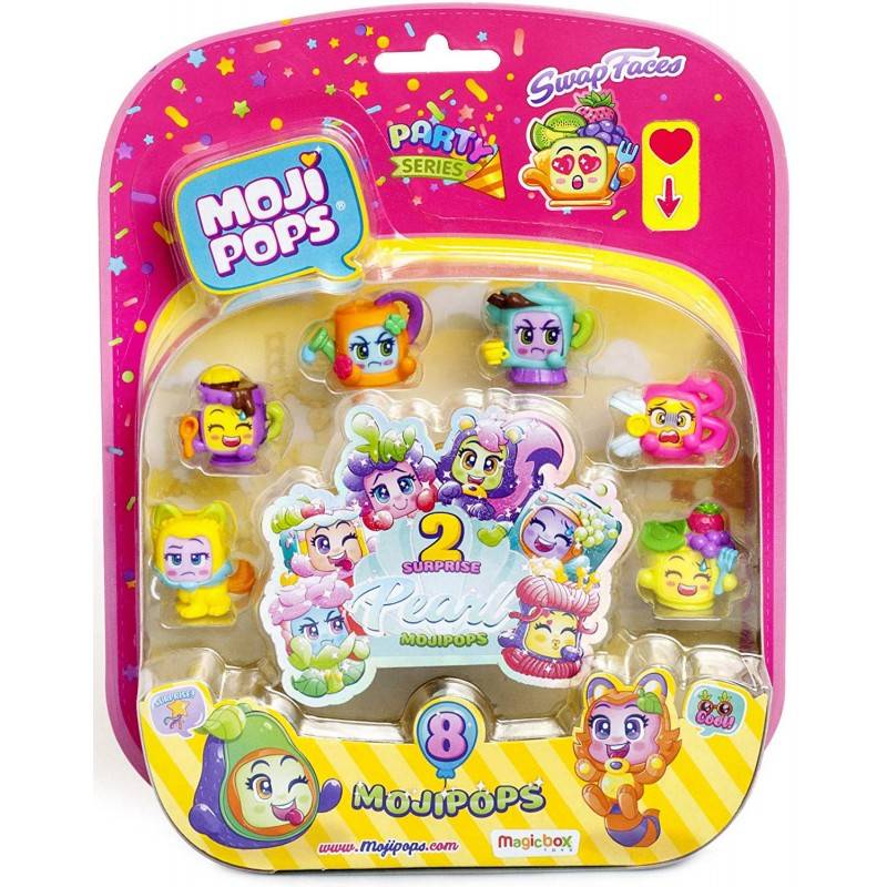 Figurki Moji Pops to kolekcjonerskie figurki dedykowane dziewczynkom od 4 roku życia, będące odpowiednikiem popularnej serii Super Zings. Moji Pops to emotki przypominające przedmioty znane z życia codziennego z dwustronnymi buźkami ukazującymi różne emocje: smutek, radość, złość itp. Ich buźki są wyciągane-możesz je odwrócić lub przełożyć do innej figurki tworząc w ten sposób nowe postacie. Zabawka rozwija wyobraźnię dziecka, kreatywność oraz empatię.