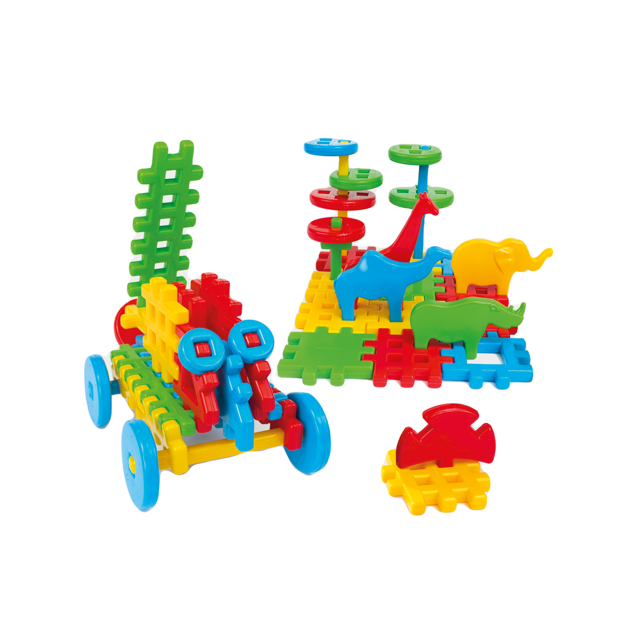 Zestaw klocków idealny dla dzieci, które dopiero zaczynają przygodę z klockami i uczą się układać oraz dopasowywać ze sobą różne elementy. Zabawa klockami budzi kreatywność, rozwija zdolności manualne, pobudza myślenie oraz daje nieskończone możliwości tworzenia. Dziecko nie układa według żadnego szablonu, a samo tworzy dzieło według własnego pomysłu.