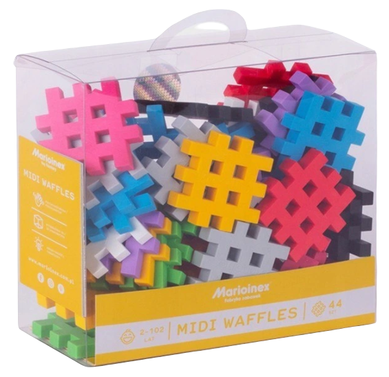 MIDI WAFFLE to seria klocków uwielbiana przez najmłodszych. Niepowtarzalna, elastyczna forma, przyjazne kolory i nieograniczone możliwości konstrukcyjnymi zachwycają i pozwalają na zabawę, która wspomaga naturalny rozwój. Dzięki dołączonej do zestawu książeczce z inspiracjami zbuduje atrakcyjne formy i kształty lub użyje własnej pomysłowości do opracowania dowolnych kształtów 2 lub 3D. Zestaw składa się z 10 kolorów i aż 44 elementy. Rozwija dziecięcą wyobraźnię, zdolności manualne i uczy logicznego myślenia.