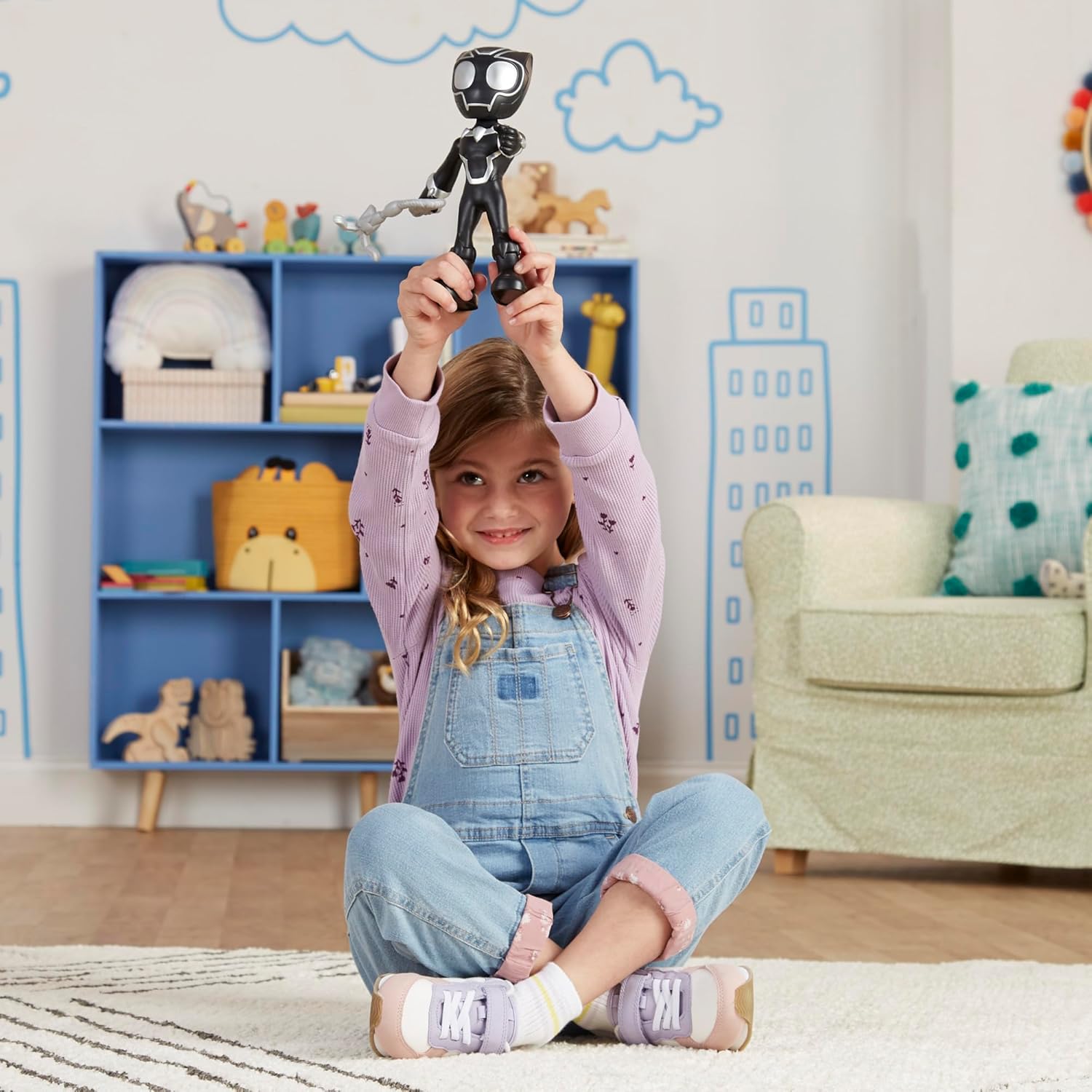 Czarna Pantera przybywa na ratunek! Superwielka figurka Czarnej Pantery z serialu "Spidey i super-kumple" to zabawka dla dzieci z dużą wyobraźnią. Figurka superbohatera ma 22,5 cm wysokości, można ją ustawiać w różnych pozycjach, a ponadto jest duża, przyjazna i gotowa do zabawy! Dzieci mogą przymocować hak do nadgarstka figurki, a także poruszać głową i ramionami Czarnej Pantery, ustawiając go w zabawnych pozach, by odtwarzać ulubione sceny z kreskówki Marvela dla przedszkolaków na kanale Disney Junior. Szukaj superwielkich figurek Spideya i Milesa Moralesa: Spider-Mana, aby jeszcze lepiej bawić się ze Spideyem!