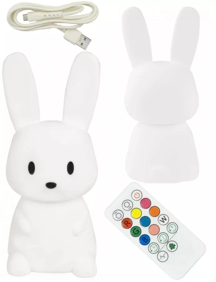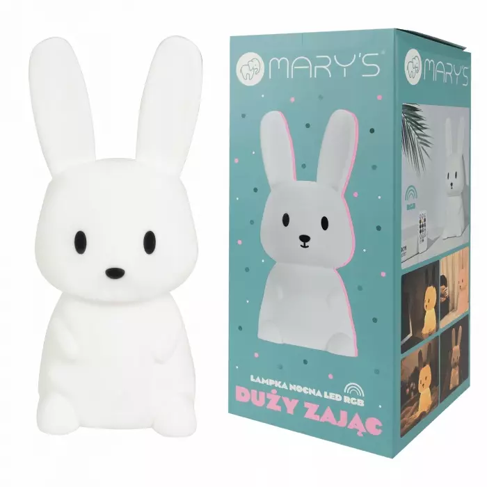 Lampka nocna na pilota MARY'S w postaci zajączka wprowadzi do pokoju Twojego dziecka odrobinę magii. Jej uroczy design doskonale sprawdzi się jako element dekoracyjny, tworząc przytulną atmosferę w każdym wnętrzu. Dzięki subtelnemu, miękkiemu światłu, lampka pomaga dzieciom czuć się bezpiecznie i spokojnie zasypiać, a jej pastelowe kolory wpasują się zarówno do pokoju niemowlęcia, jak i starszego dziecka.