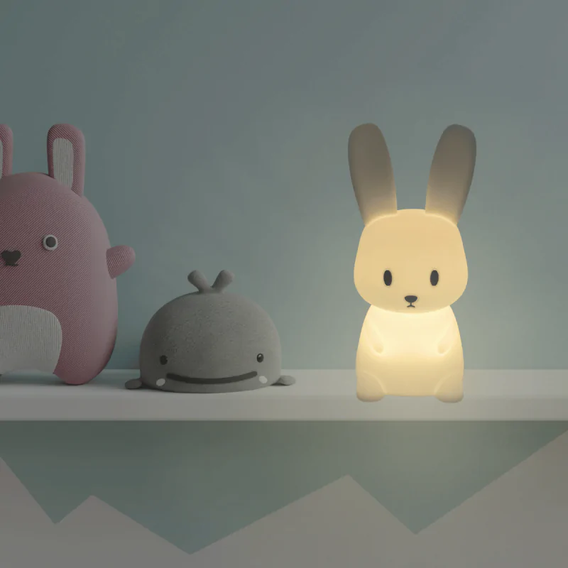 Lampka nocna na pilota MARY'S w postaci zajączka wprowadzi do pokoju Twojego dziecka odrobinę magii. Jej uroczy design doskonale sprawdzi się jako element dekoracyjny, tworząc przytulną atmosferę w każdym wnętrzu. Dzięki subtelnemu, miękkiemu światłu, lampka pomaga dzieciom czuć się bezpiecznie i spokojnie zasypiać, a jej pastelowe kolory wpasują się zarówno do pokoju niemowlęcia, jak i starszego dziecka.