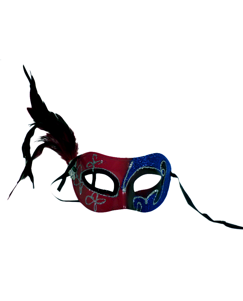 Maska Karnawałowa z Piórkami Czerwono Niebieska