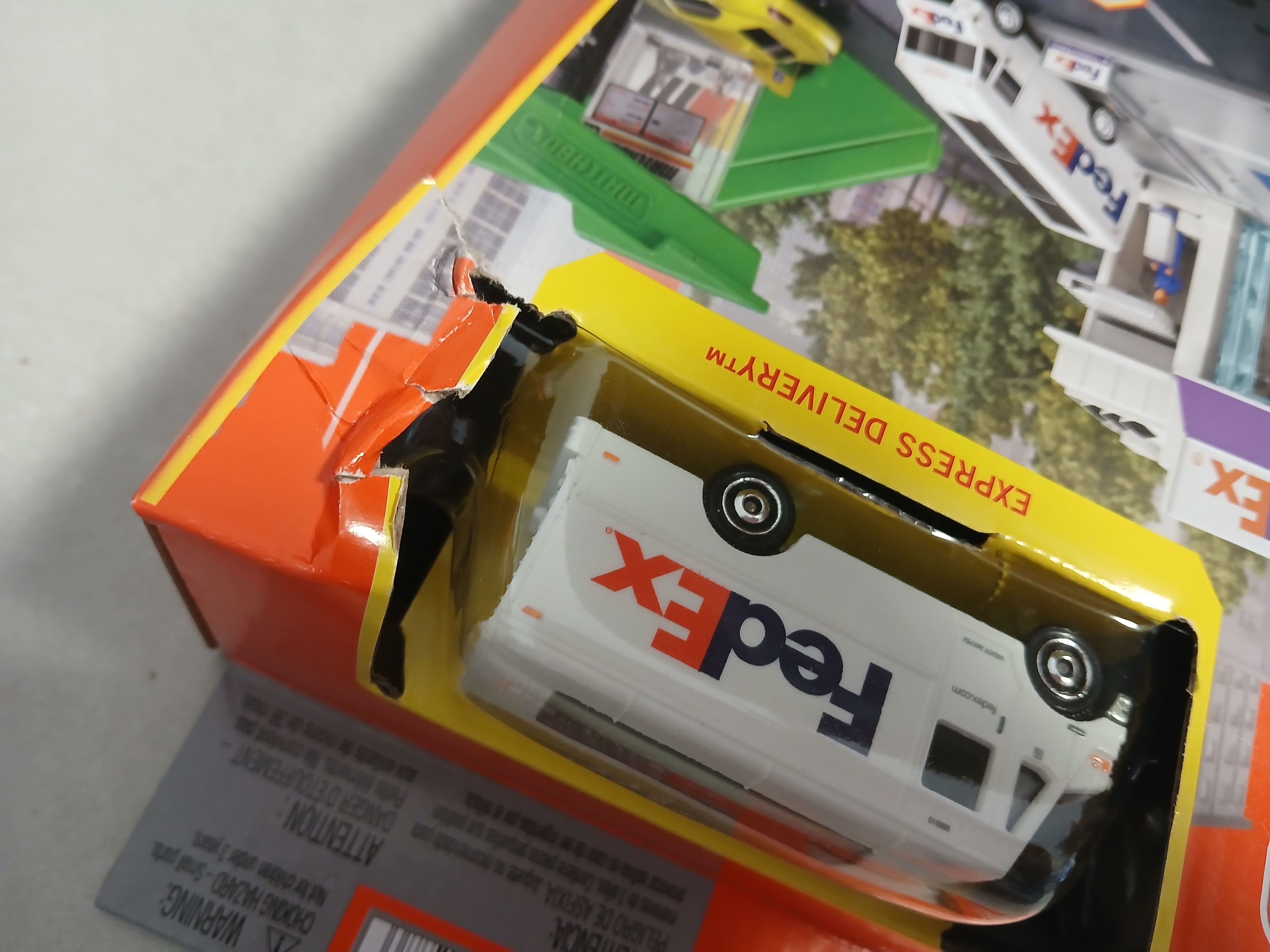 Matchbox Prawdziwe Przygody Centrum Wysyłkowe Fedex + pojazd HLY62 - uszkodzone opakowanie