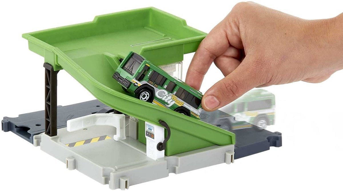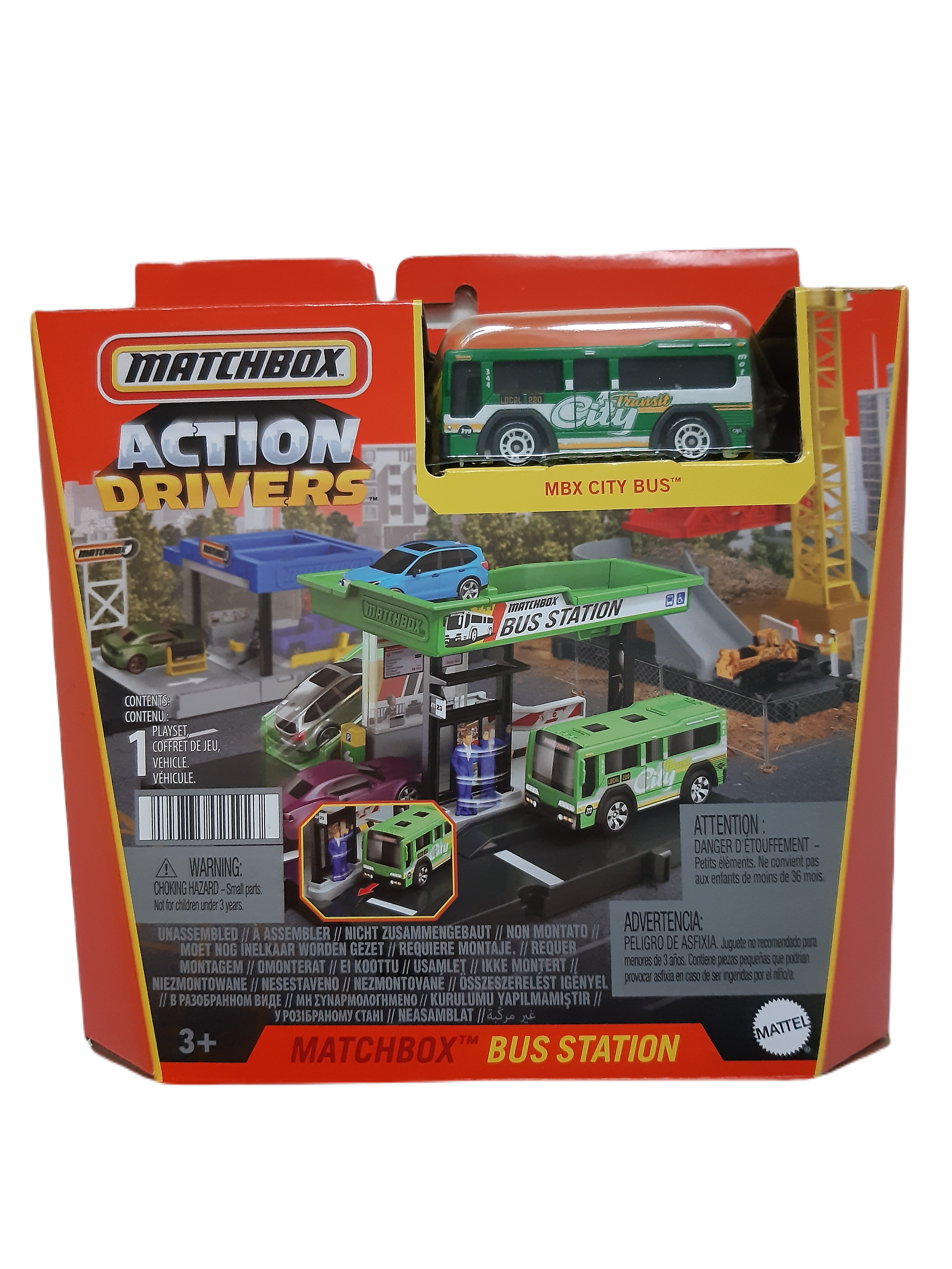 Ten zestaw Matchbox™ Action Drivers™ Prawdziwe Przygody inspiruje do wymyślania różnorodnych historii, ogranicza nas jedynie wyobraźnia! Marzysz o ty, aby zostać kierowcą autobusu? Ten zestaw stworzony został specjalnie dla Ciebie! Dzieci mogą kierować akcją w kilku obszarach, otwierając bramki, tankować przy dystrybutorze lub parkować na górnym parkingu. Łatwe w użyciu łączniki w każdym rogu umożliwiają łączenie z innymi zestawami Matchbox™ Action Drivers™ oraz Hot Wheels™ City. (Dodatkowe zestawy sprzedawane oddzielnie).
