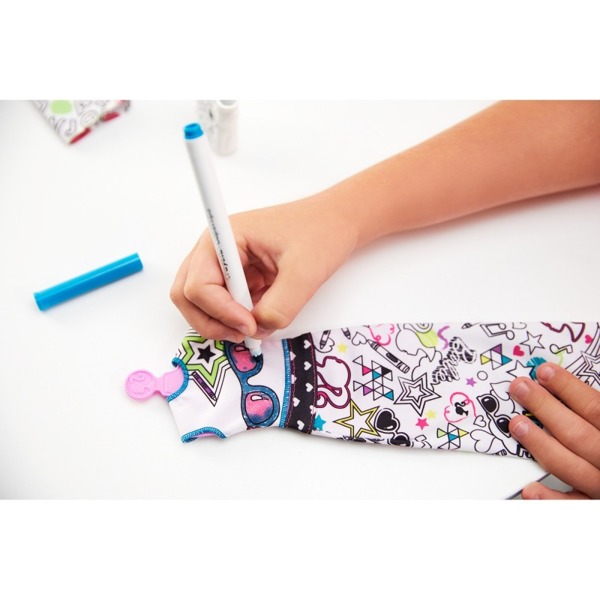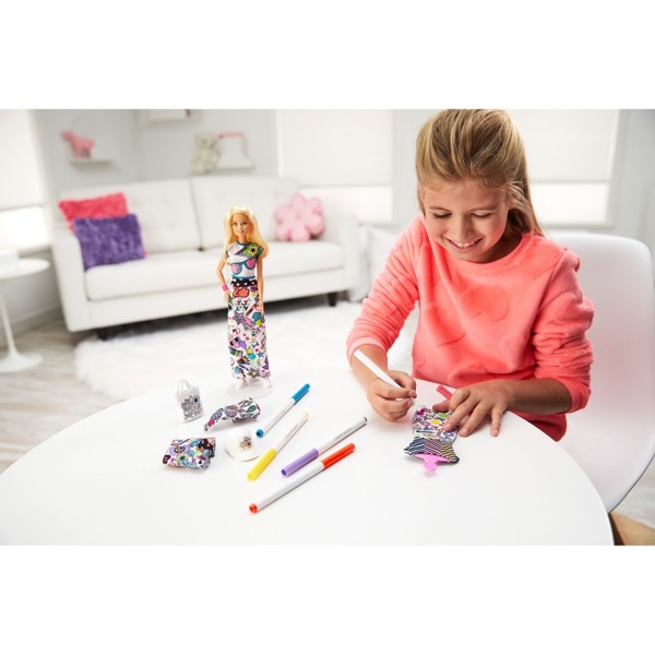 Z tym zestawem od Barbie® CRAYOLA® czeka Cię mnóstwo barwnej i kreatywnej zabawy – od Ciebie i Twojej fantazji zależy, jak będą wyglądały ubranka Barbie®, które są stworzone do tego, by je kolorować (a potem wypłukać i ozdobić ponownie). Każda dziewczynka może stać się projektantką, dzięki zestawowi zawierającemu aż pięć wyjątkowych markerów Crayola®, trzy komplety ubrań, torebkę i czapkę. Wystarczy wybrać jedno ubranko, nałożyć je na formę i puścić wodze fantazji, kolorując wedle własnego uznania. Modne sportowe buty świetnie pasują do różnych stylizacji.