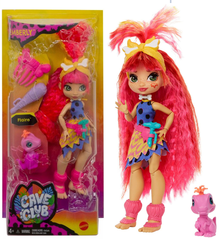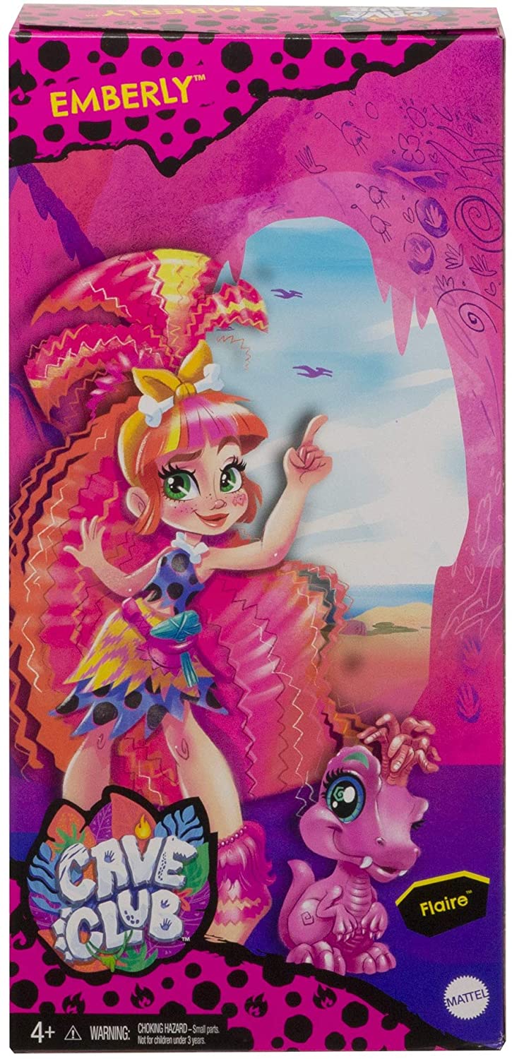 Cave Club to nowa seria z młodymi jaskiniowcami, która przeniesie Cię w zamierzchłe czasy, by przeżywać prehistoryczne przygody ze swoimi ulubionymi postaciami, takimi jak Emerly. Pomóż lalce Emberly w opiece nad jej pupilem dinozaurem Flaire. Emberly posiada maczugę, którą można przetransformować w pochodnię. Od teraz będą mieli się czym ogrzać. Lalka Emberly jest ubrana w neonowy strój o zwierzęcym wzorze, a czerwone włosy ma ułożone w szaloną fryzurę.