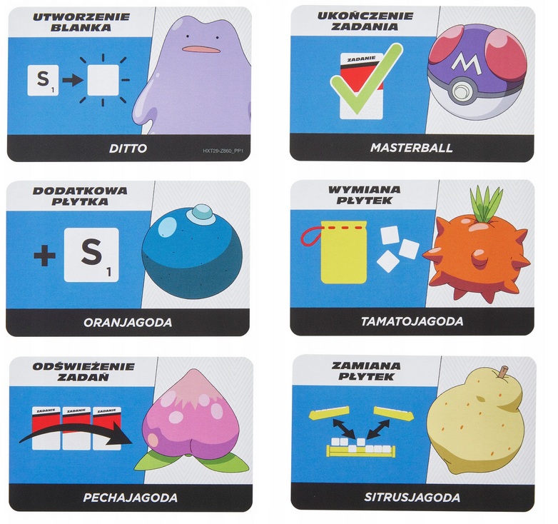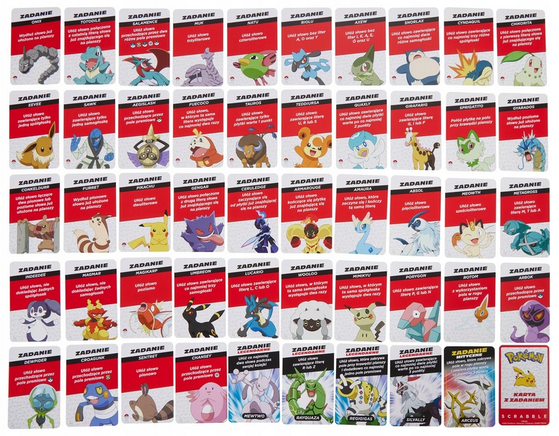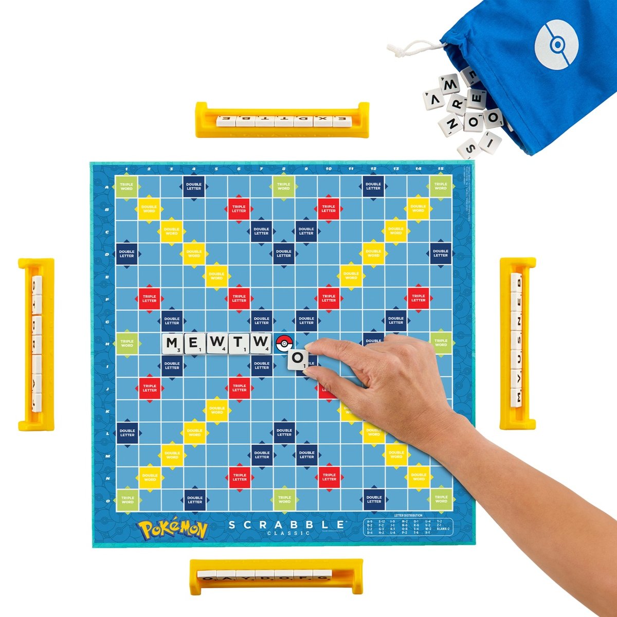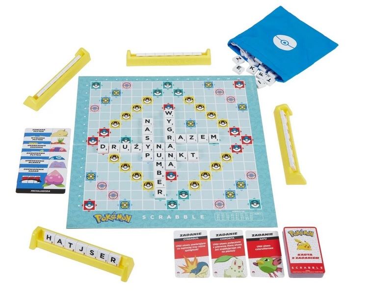 Odwróćcie planszę, aby grać w klasyczną wersję Scrabble! Zbierajcie punkty premiowe za układanie słów ze świata Pokemonów - od Absol po Zygarde!