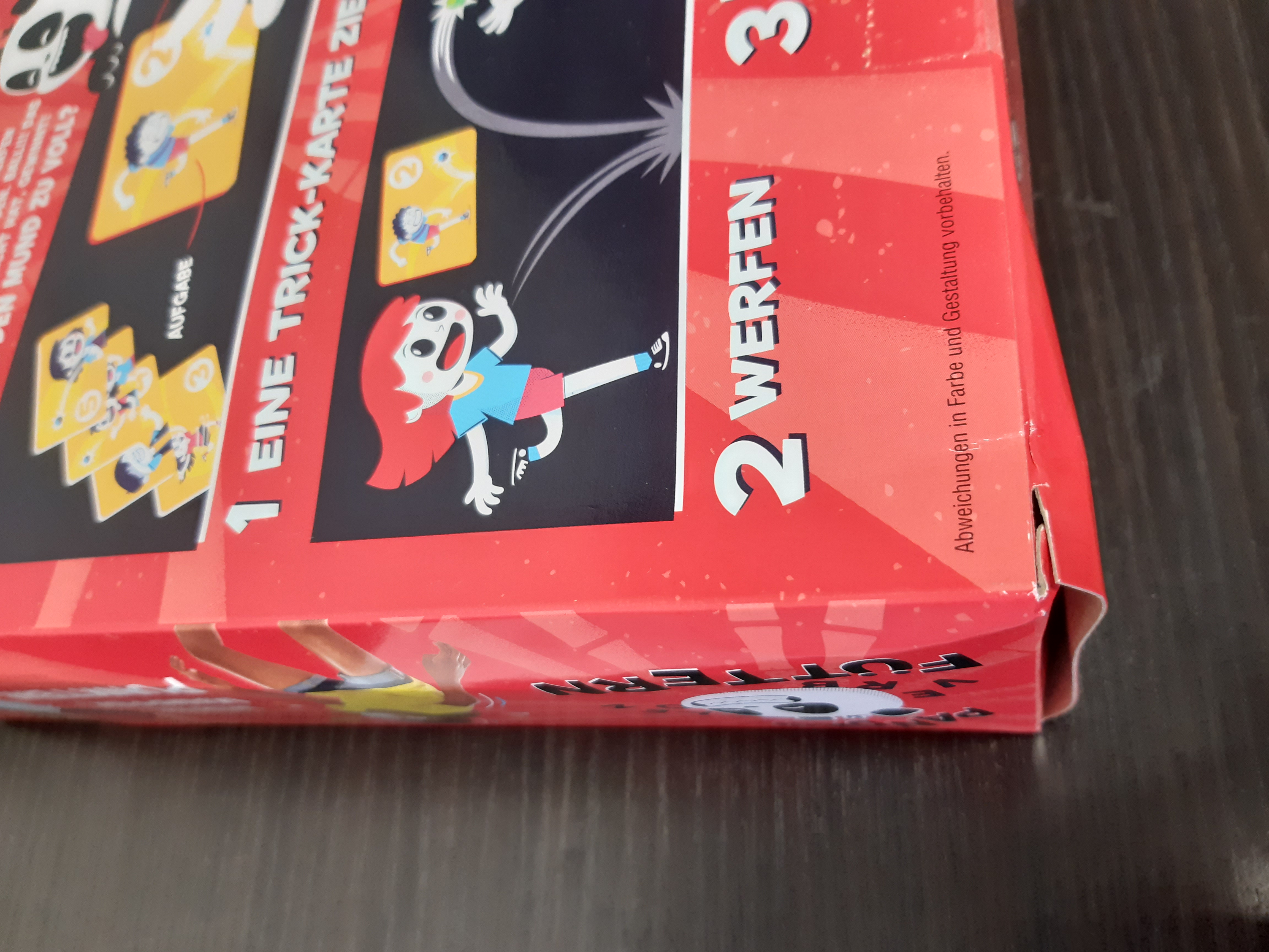 Treser ciągnie kartę ze sztuczką, na której pokazane jest wyzwanie do wykonania i dozwolona liczka prób. Treser bierze liczbę "bambusowych" piłeczek równą liczbie prób na karcie. Jeśli Treser i Panda wykonają sztuczkę, zanim skończy im się dostępna liczba prób, zdobędą punkt i zachowają kartę!