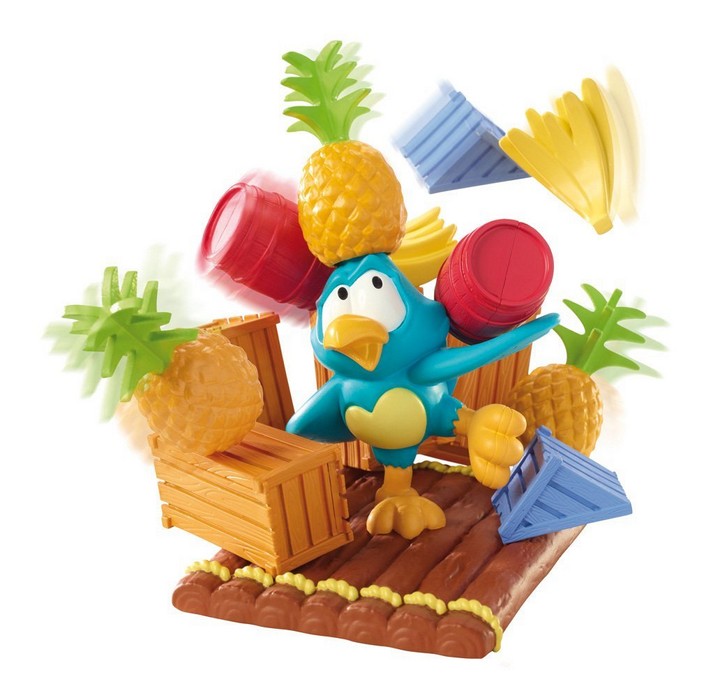 Opanowanie i pewna ręka przydadzą się podczas gry w tę "tropikalną" grę zręcznościową. Gracze ostrożnie układają swój ładunek na papuziej tratwie, a następnie przesuwają ją do kolejnego gracza, który musi dołożyć swój ładunek. Gdy stos się przewróci, gracz, który spowodował wywrotkę, za karę dostaje więcej rzeczy do załadowania. Pierwszy gracz, który pozbędzie się całego swojego ładunku, wygrywa. Stropień trudności można zmieniać i dostosować do poziomu zręczności graczy - służy do tego specjalna wypustka na spodzie tratwy.