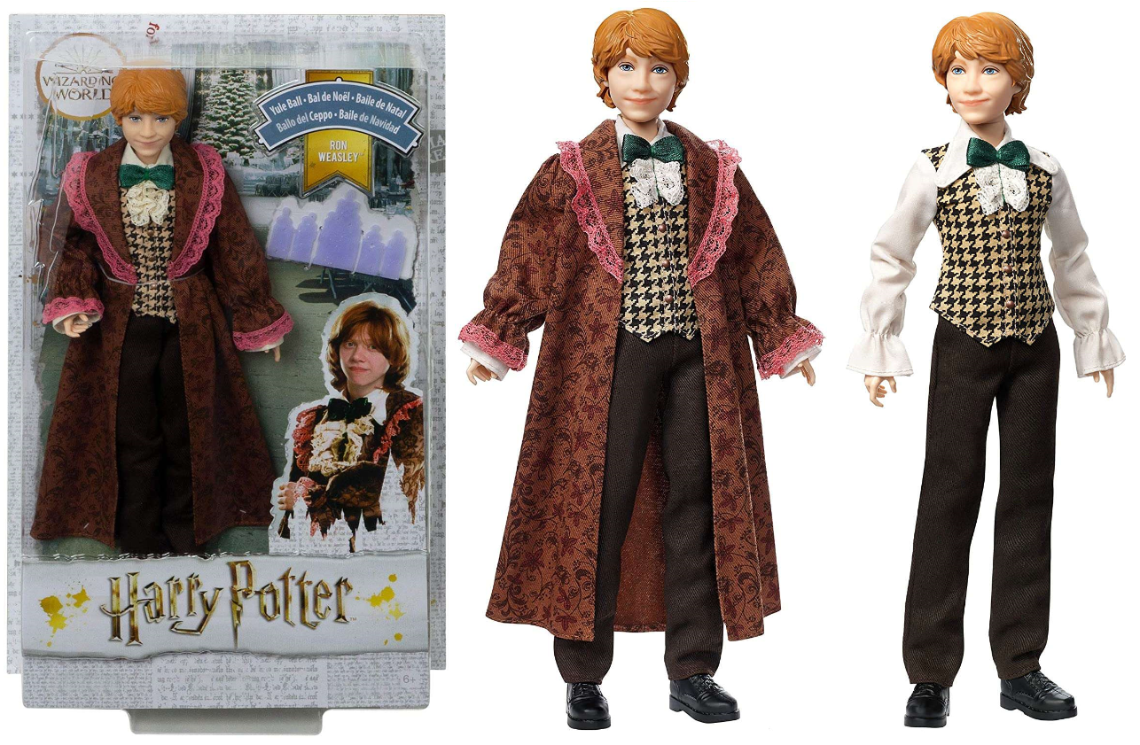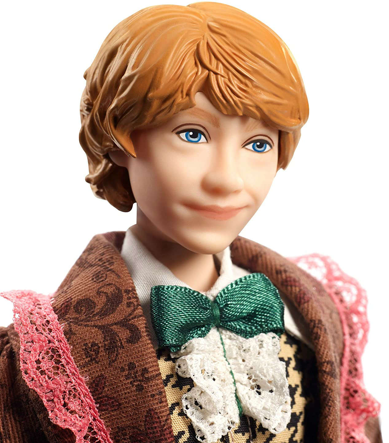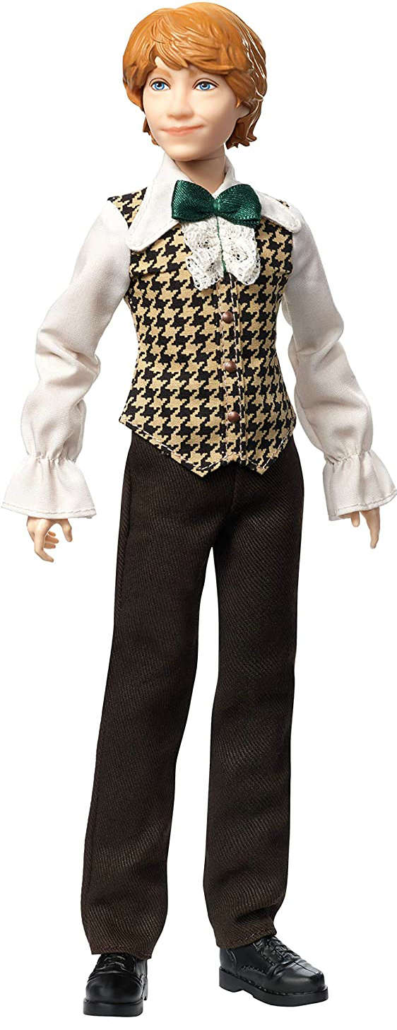 Każde dziecko zna najlepszego Harrego Pottera - Rona Weasley'a. Jest on bochaterem serii o odważnym młodym czarodzieju i grupce jego przyjaciół z elitarnej szkoły dla młodych czarodziei, która próbuje przezwyciężyć dobro nad złem. Lalka jest przepięknie wykonana z dbałością o detale. Ron szykuje się do udziału w corocznym Balu Bożonarodzeniowym, ubrany jest w dobrze znaną z czwartej części filmu odświętną szatę, w której pojawił się na uroczystym balu. W zestawie znajduje się również zaproszenie na bal w kształcie zamku. Lalka ma ok. 26 cm wysokości i posiada ruchome ręce, nogi oraz głowę, dzięki czemu jeszcze lepiej odwzorowuje prawdziwą postać.