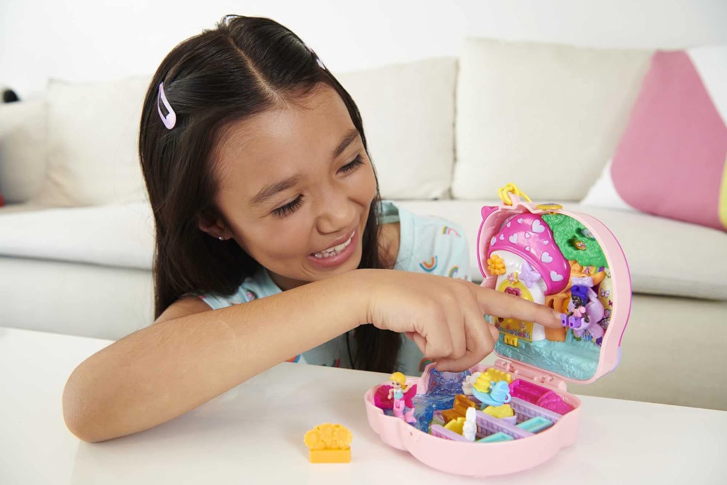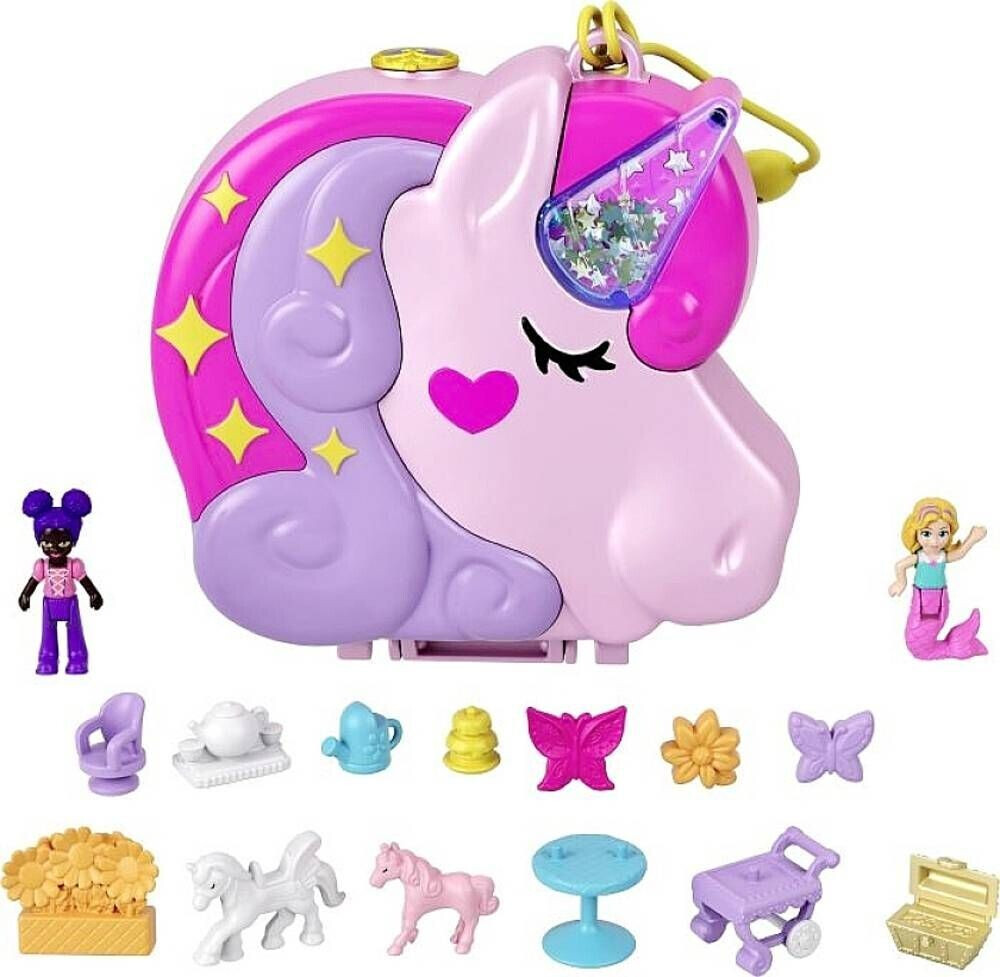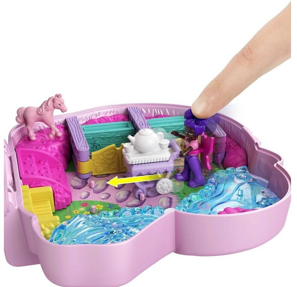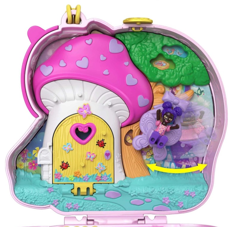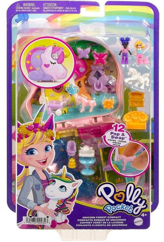 Poznaj zestaw kompaktowy Polly Pocket las jednorożców i spędź spędź dzień na basenie. Otwórz jednorożca, a ukaże Ci się niesamowity świat. Odkryj niesamowite funkcje oraz znajdziesz tam 2 mikrolalki i akcesoria. Las jednorożców jest kieszonkowym zestawem, który przeniesie twoje dziecko w magiczny świat baśni i cudownych stworzeń. Laleczki mogą bujać się na huśtawce, odwiedzać domek, serduszkowy grzybek, a także opiekować się konikiem i jednorożcem. Kiedy przyjdzie czas na kolejną przygodę, kompaktowy zestaw zamyka się, abyś mógł zabrać go ze sobą, gdziekolwiek zechcesz!