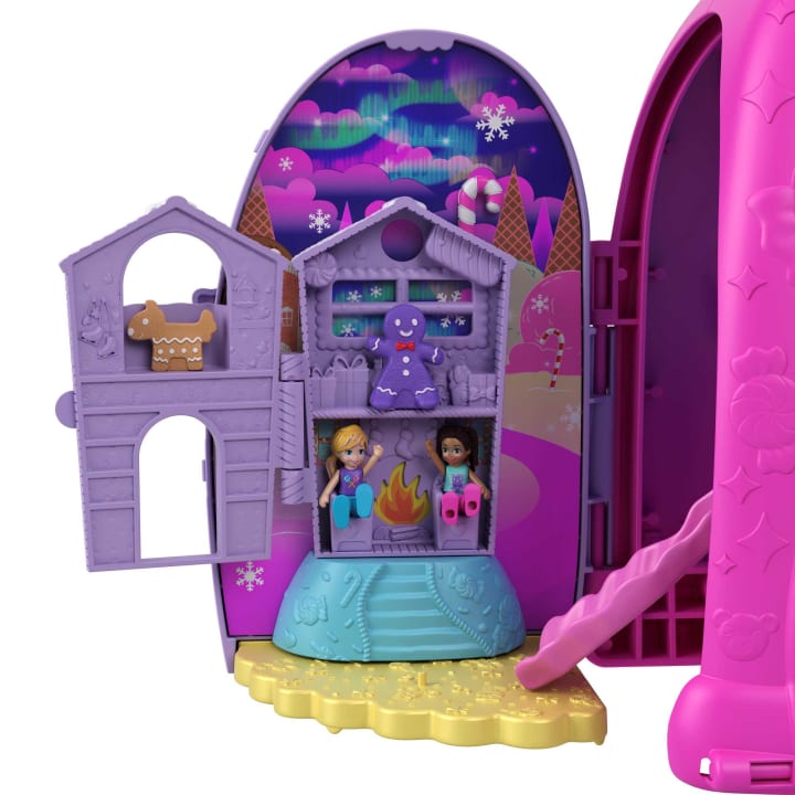 Piękne baśniowe akwarium z zamkiem i prawdziwymi bąbelkami z pewnością przypadnie do gustu niejednej małej dziewczynce i miłośniczce przygód Polly Pocket. Zestaw ma 4 obszary do zabawy oraz 32 akcesoria, w tym mikrolalelczki Polly i Shani, a także 6 kul. Miś Automacik kryje w sobie wiele niespodzianek. Gdy otworzymy jego boki, odkryjemy piernikowy domek i sklep ze słodyczami. A po otwarciu czapeczki ukaże się cudowna kawiarnia. Wystarczy zakręcić pokrętłem, aby wylosować kulę z niespodzianką w środku. Wszystkie elementy zestawu można zamknąć w środku i przenosić zestaw za pomocą uchwytu. Zabawa na całego! Lalki nie stoją samodzielnie.