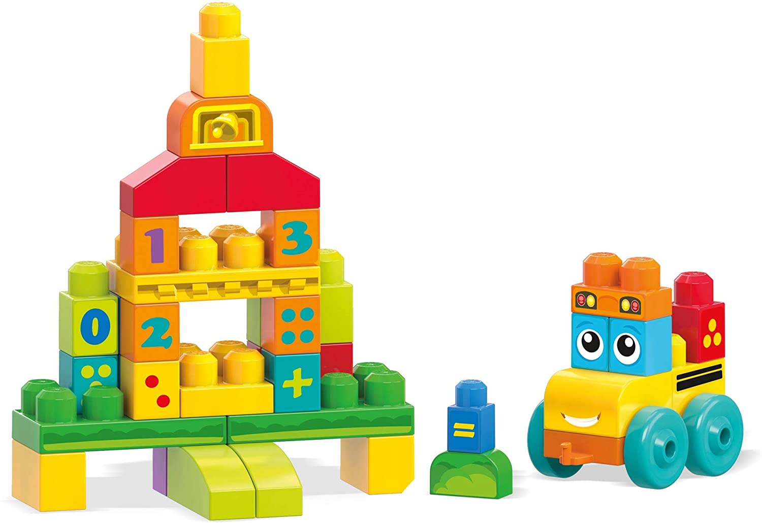 Buduj i ucz się matematyki z najnowszym zestawem klocków od Mega Bloks! Budowanie plus nauka liczb to świetna zabawa. Dzięki dużym, kolorowym, numerowanym klockom maluch nauczy się wszystkiego o matematyce! Ten łatwy do zbudowania zestaw z kolorową dekoracją o tematyce matematycznej pozwala łączyć liczby, symbole i piktogramy, aby nauczyć się wszystkiego, od liczenia po równania. Poznaj liczby i matematykę z tym przyjaznym żółtym autobusem szkolnym! Weź kloci do ręki i zbuduj autobus i kolorową szkołę wraz z tablicą i dzwonem.