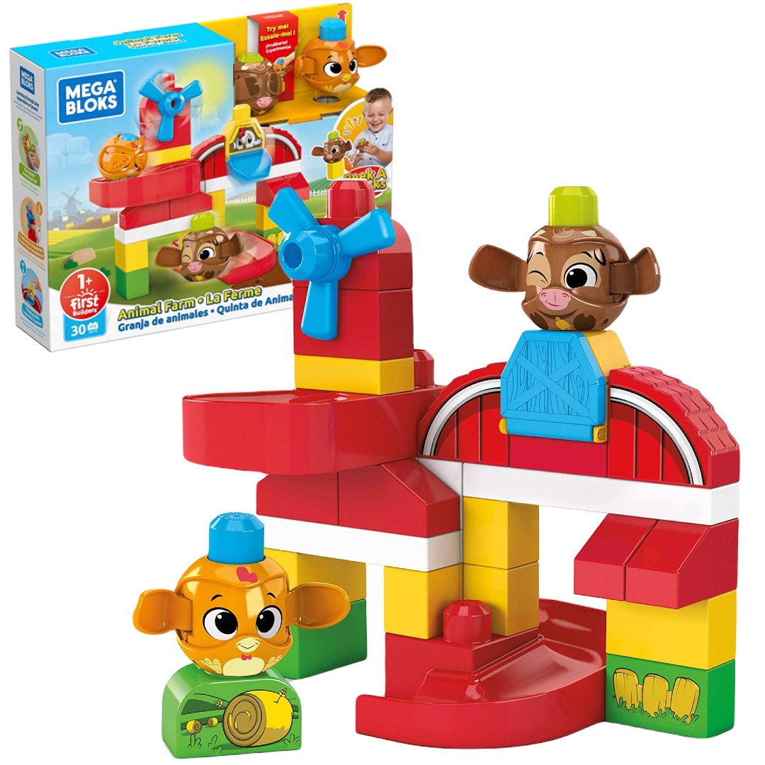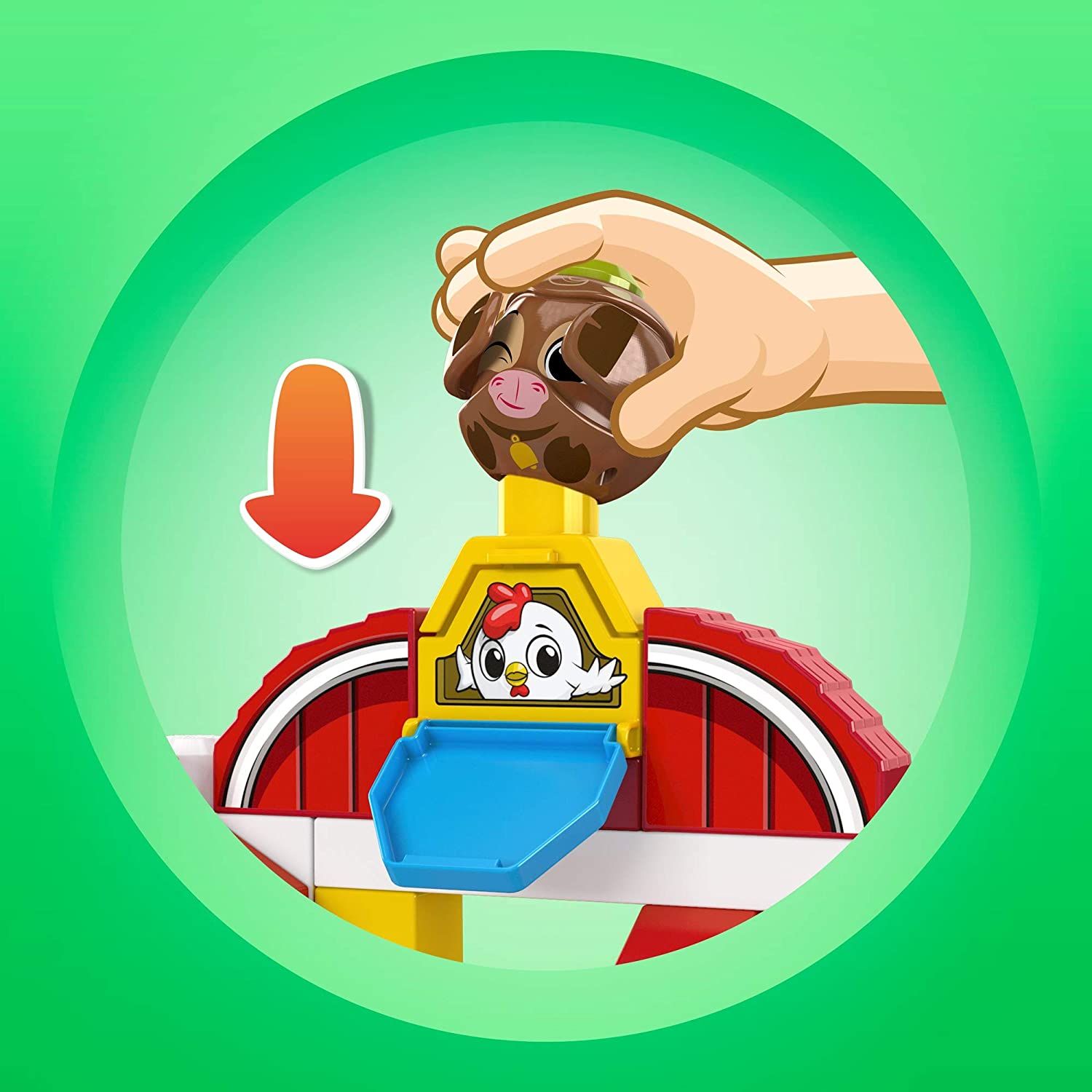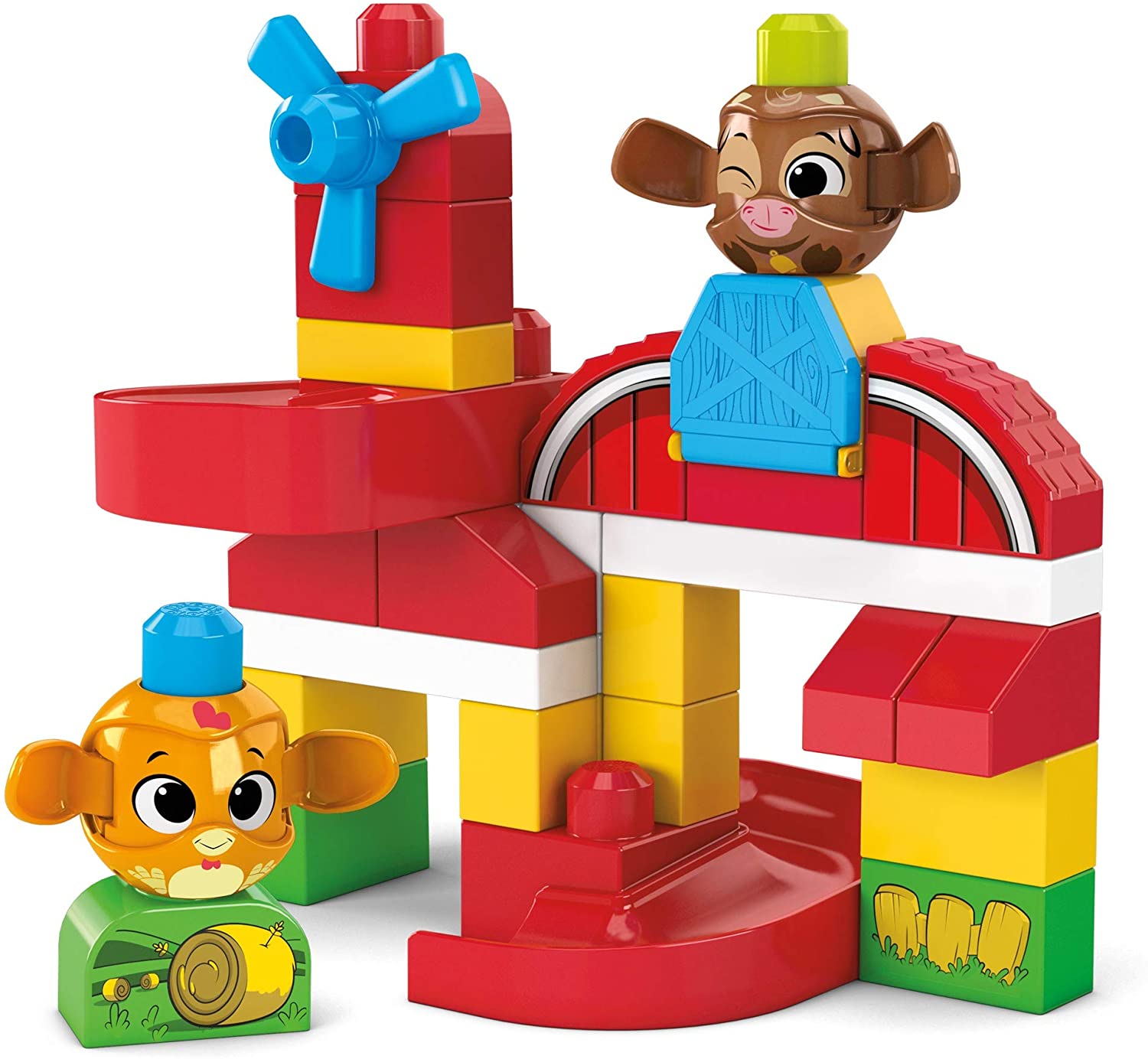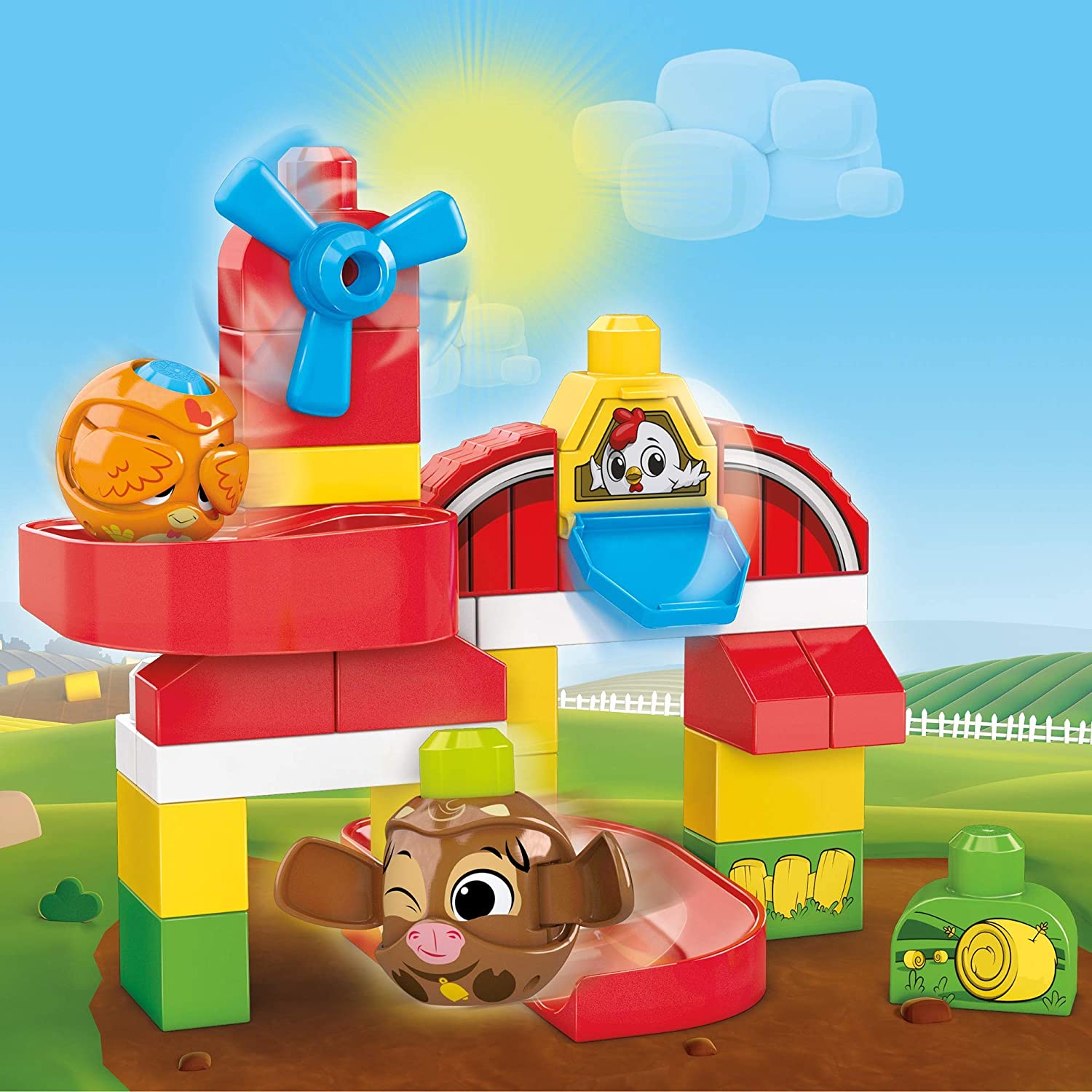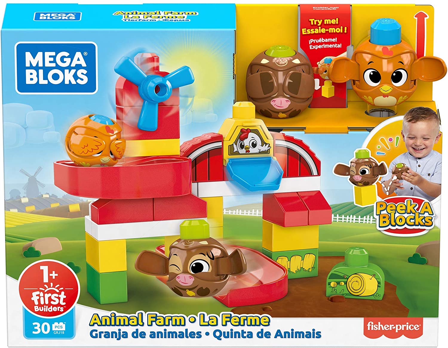 Każde dziecko pokocha przygody, które odbędzie wraz ze zwierzęcymi przyjaciółmi Peek A Blocks, budując budynek Farmy Mega Bloks. Twój mały farmer może umieścić cudaczną krówkę lub uroczego kurczaka Peek-A-Blocks na dowolnym bloku, aby zrobić niespodziankę a ku-ku, a następnie zesłać go na zjeżdżalnię, aby mieć jeszcze większą frajdę z zabawy. Zakręć wiatrakiem lub użyj klocków Peek-A, aby otworzyć sekretne drzwi, skrywając uroczego kurczaczka.