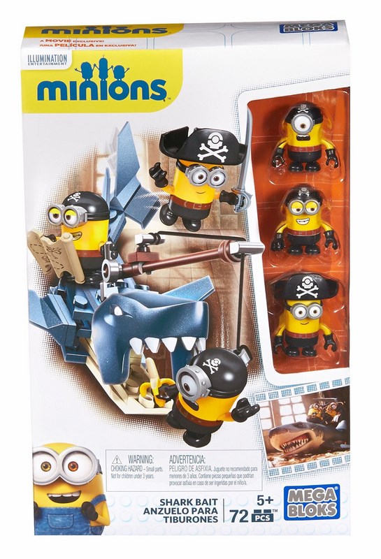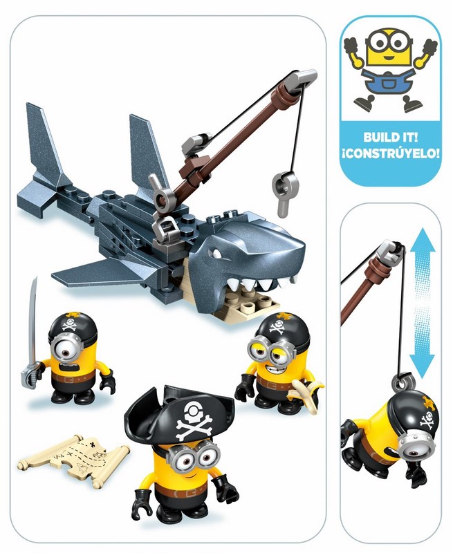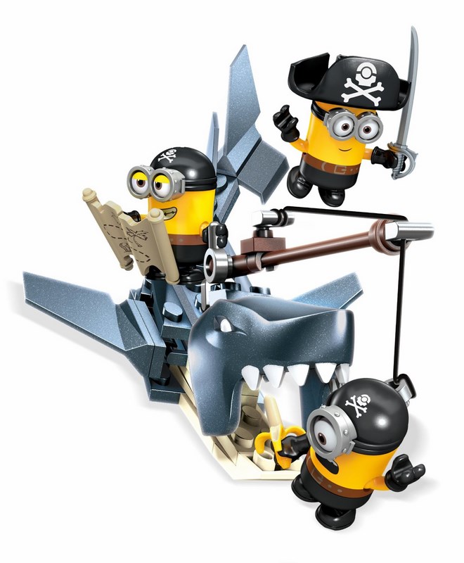 Zestaw nawiązuje do filmowych scen i pozwala na zabawę postacią Minionka. Cechy zestawu: możliwość budowy pirackiej scenerii – rekina, figurki Minionków do budowy z wymiennymi elementami (płaszcz, gogle, ręce, nóżki). Wspaniałe uzupełnienie innych zestawów z serii Mega Bloks Minionki.