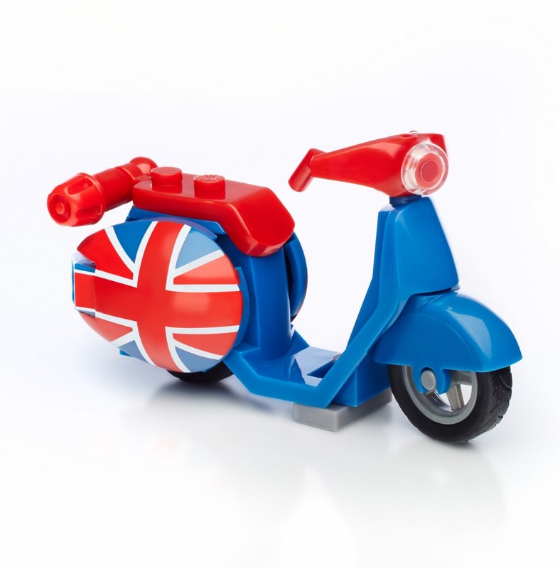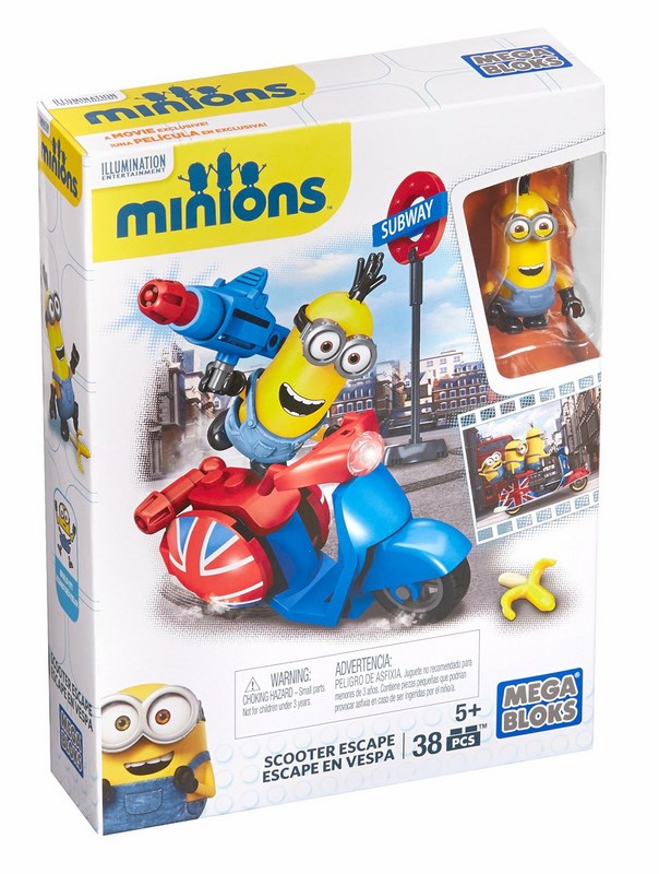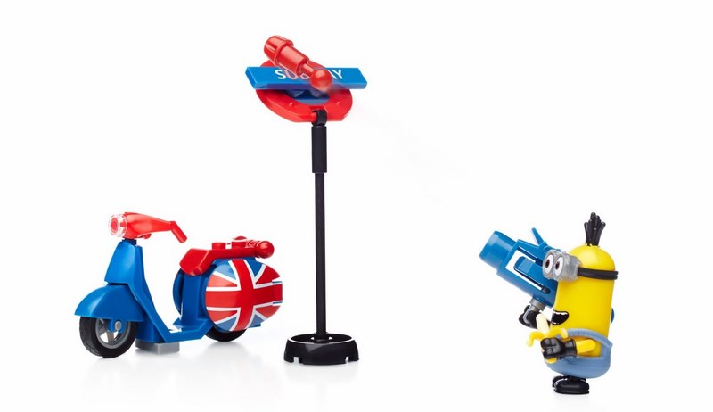 Potrzeba czegoś więcej niż czerwone światło, by zatrzymać Kevina pędzącego przez Londyn swoim angielskim skuterem. Zestaw zawiera możliwość budowy charakterystycznego skutera i znaku. Co więcej figurka Kevina zawiera wymienne elementy (ogrodniczki, gogle, ręce, nóżki). Dostępny jest także banan i działająca wyrzutnia. Wspaniałe uzupełnienie innych zestawów z serii Mega Bloks Minionki.