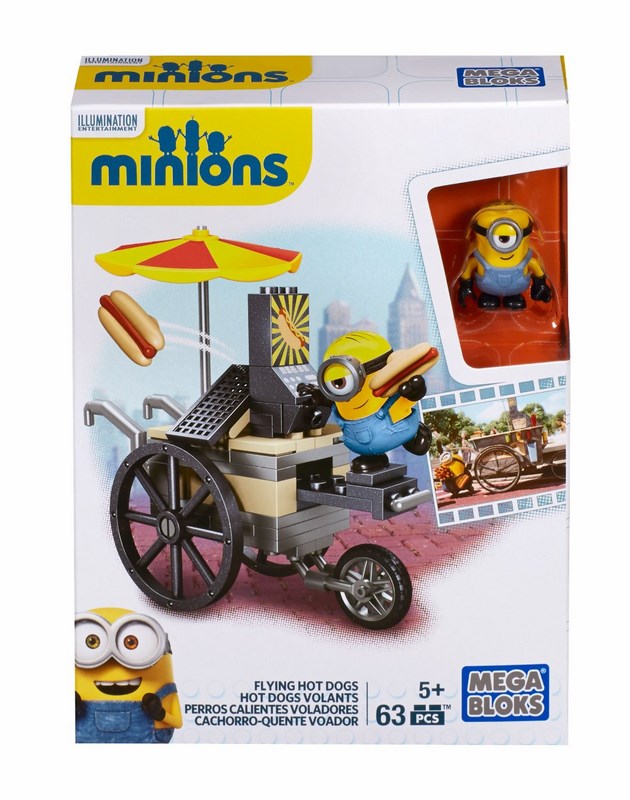 Gdy Stuart rozpala grilla w swoim wózku z fast foodem – wróży to prawdziwy chaos! Czas na latające hot – dogi. Zestaw zawiera możliwość budowy wózka z hot dogami z parasolem, obracającymi się kółkami, kasą oraz opiekaczem. Co więcej figurka Stuarta zawiera wymienne elementy (ogrodniczki, gogle, ręce, nóżki). Wspaniałe uzupełnienie innych zestawów z serii Mega Bloks Minionki.