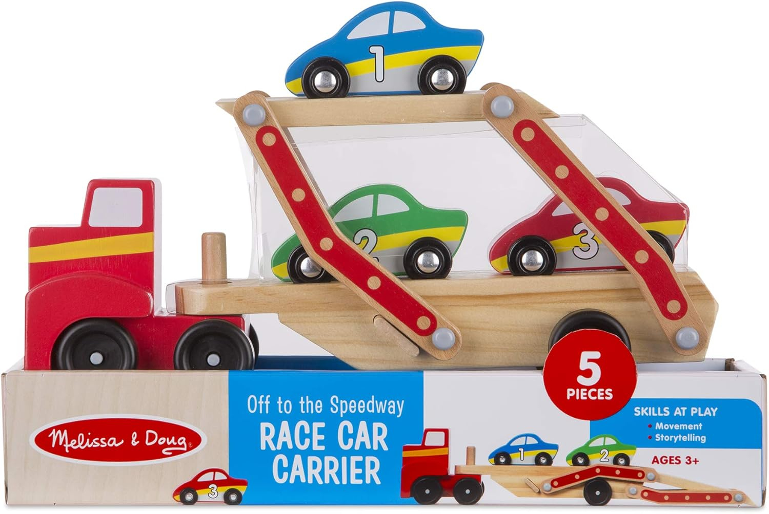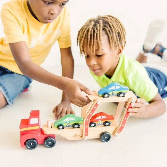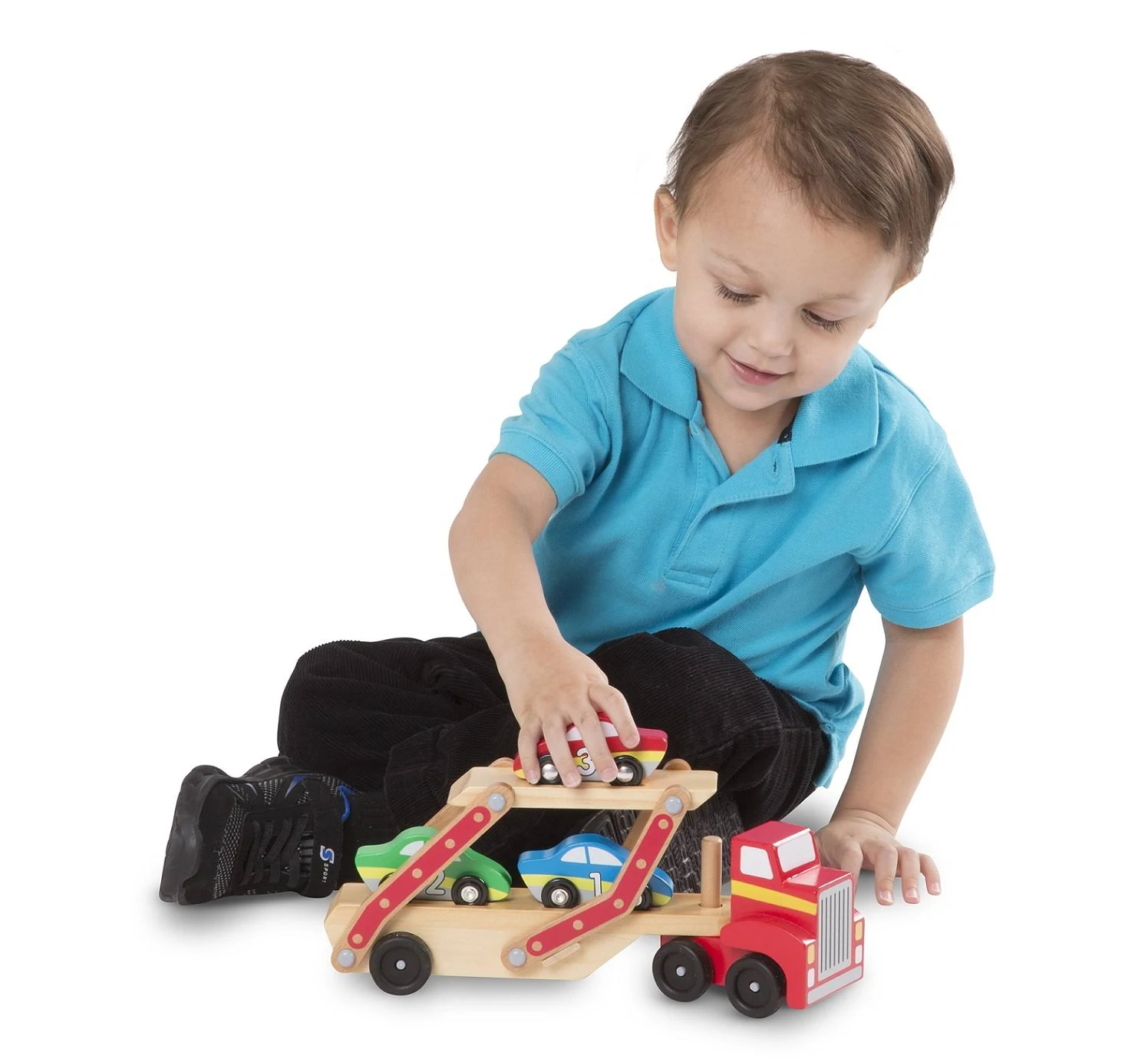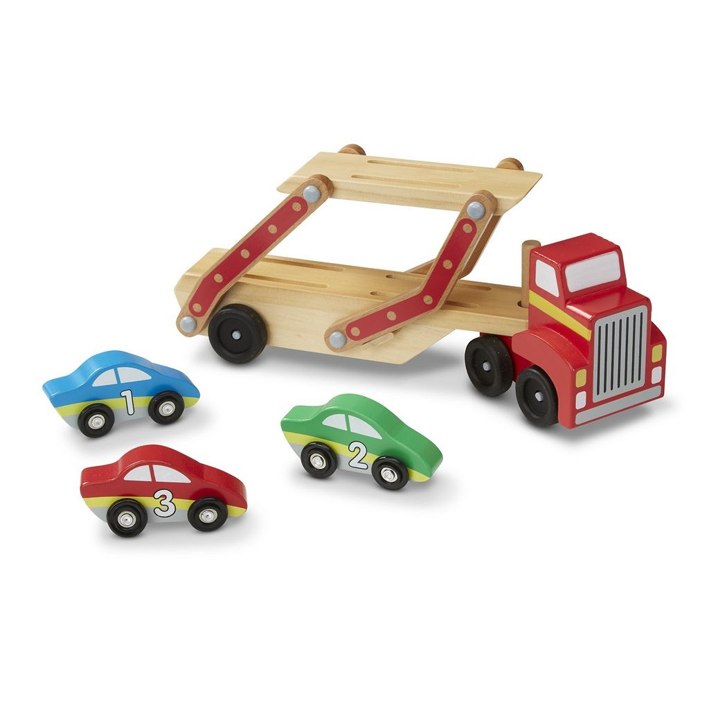 Melissa&Doug Drewniana Ciężarówka Transporter z 3 pojazdami 94411