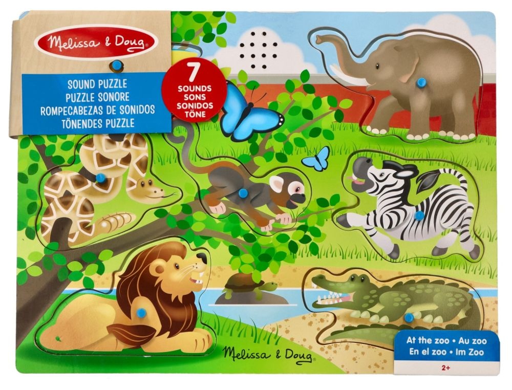 Melissa&Doug Drewniane Puzzle z dźwiękiem Zwierzęta ZOO 7 elementów 94426