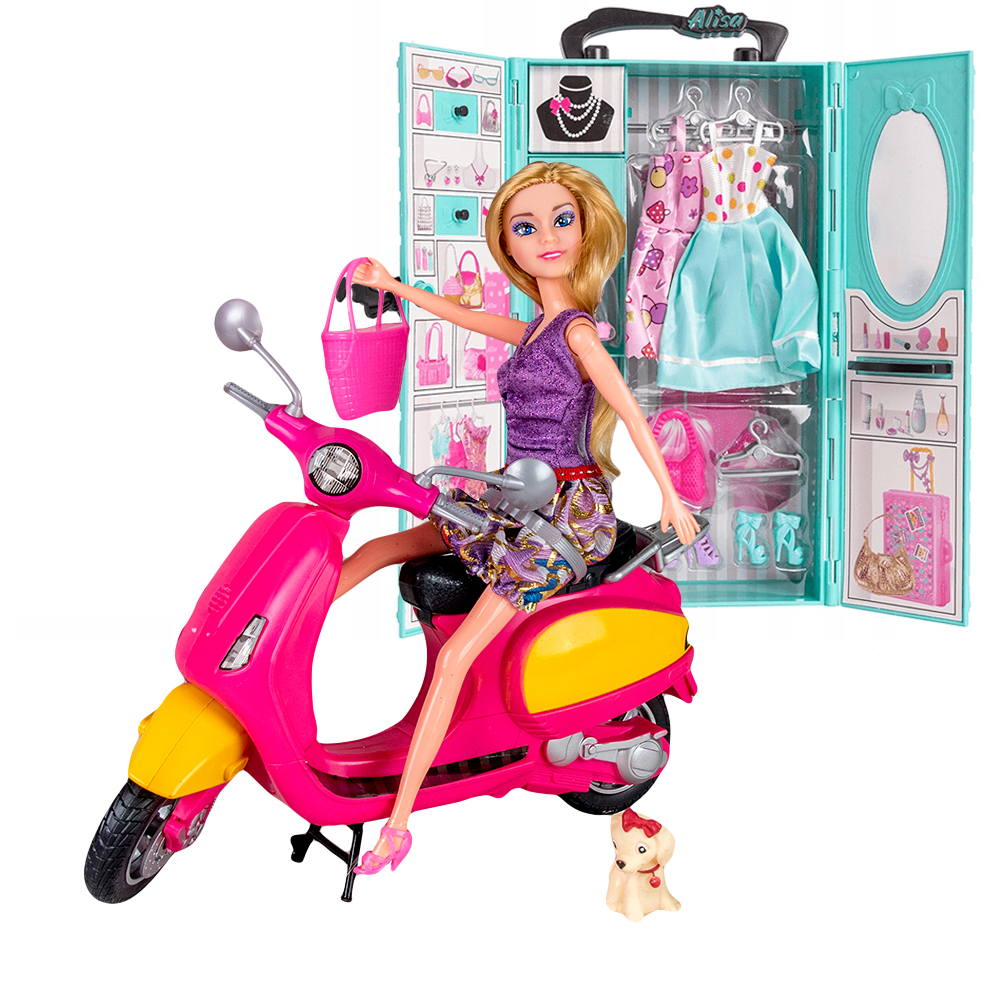 Zestaw zawiera miętową szafę z dwoma otwieranymi skrzydłami. Wreszcie piękne kreacje laleczki będą uporządkowane w szafie. Szafa posiada liczne półeczki, na których możesz wyeksponować modne buciki i akcesoria. We wnętrzu szafy znajduje się uchwyt, na którym można powiesić sukienki na wieszakach. Szafa posiada zamykane drzwiczki i uchwyt do przenoszenia, dzięki czemu szafę bez problemu można transportować w inne miejsce. Po otwarciu szafy na prawym jej skrzydle znajduje się toaletka z lusterkiem, a po lewej stronie dwa dodatkowe uchwyty na ubrania. Dodatkowo w zestawie znajdują się dwie sukienki oraz liczne akcesoria takie jak: 3 pary butów, 3 torebki, 6 wieszaków na ubrania. Szafa posiada uchwyt oraz zapięcie w kształcie kokardki, dzięki czemu łatwo można ją przetransportować.