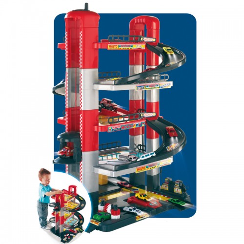 Fantastyczny nowy garaż z mnóstwem zabawy i godzinami szalonej jazdy. Zestaw charakteryzuje się mocnymi podstawami i stabilną konstrukcją, przy czym jest bardzo prosty w montażu. Parking posiada mnóstwo poziomów, na których znajdziemy takie atrakcje jak stacja benzynowa, myjnia samochodowa czy auto-serwis. W zestawie znajduje się także wiele innych elementów urozmaicających zabawę, tj. winda umożliwiająca przemieszczanie aut między poziomami parkingu, odcinki drogowe ze zjazdem i zakrętami.