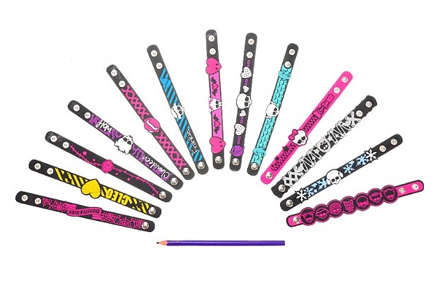 Straszna bransoletka na rękę to niezbędny dodatek dla każdej upiornej uczennicy. Każda z bransoletek jest w kolorystyce, z logo lub nazwą Monster High. Dodatkowo mają trójwymiarowe emblematy nadające wyjątkowego charakteru tej oryginalnej ozdobie. Wybierz jedną dla siebie! Zapięcie na napy pozwala szybko założyć bransoletkę na nadgarstek. Seria składa się z kilku różnych modeli. Cena dotyczy jednej sztuki. Bransoletki wysyłamy losowo.