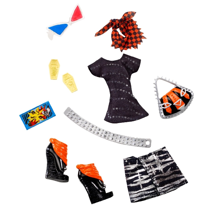 Fasion Pack to seria stylowych ubrań i akcesoriów zaprojektowanych z myślą o uczennicach staszyceum. Wszystkie kreacje mają za zadanie jak najlepiej oddać charakter studentek Monster High. Dzika kotka Toralei zawsze wybiera stroje podkreślające jej drapieżny styl. Czarna bluzka, mini spódniczka i srebrny pasek z błyskotkami to podstawa. Dodatkami są czarne buty na koturnach, kolorowe okulary oraz pomarańczowa apaszka z naszpikowaną kolcami torebką.