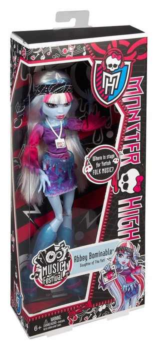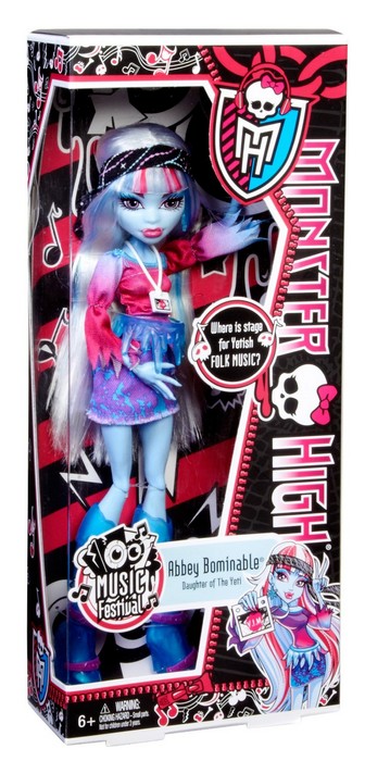 Lalki Monster High zapraszają do udziału w festiwalu muzycznym. Po kreacjach straszyciółek można poznać, jaki rodzaj muzyki preferują. Abbey Bominable popularyzuje tradycje i muzykę z Himalajów. Na szyi Abbey znajduje się identyfikator dla VIP-ów, z którym może wejść na zaplecze sceny.