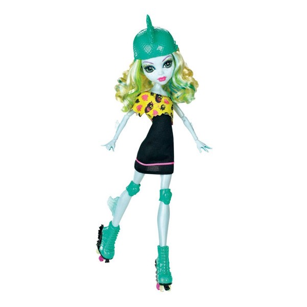 Lagoona Blue to jedna z najładniejszych dziewczyn w Monster High! Jest córką potwora morskiego, dlatego najchętniej czas spędza w wodzie. Jeśli już musi wypełznąć na ląd, to najczęściej występuje w luźnych spodenkach, topie i japonkach. Tym razem Lagoona przygotowana jest do jazdy na rolkach. Tak się złożyło, że wszyscy najlepsi rolkarze są kontuzjowani, dlatego ona i pozostałe upiory z Monster High wkraczają do akcji! Lalka nie stoi samodzielnie.