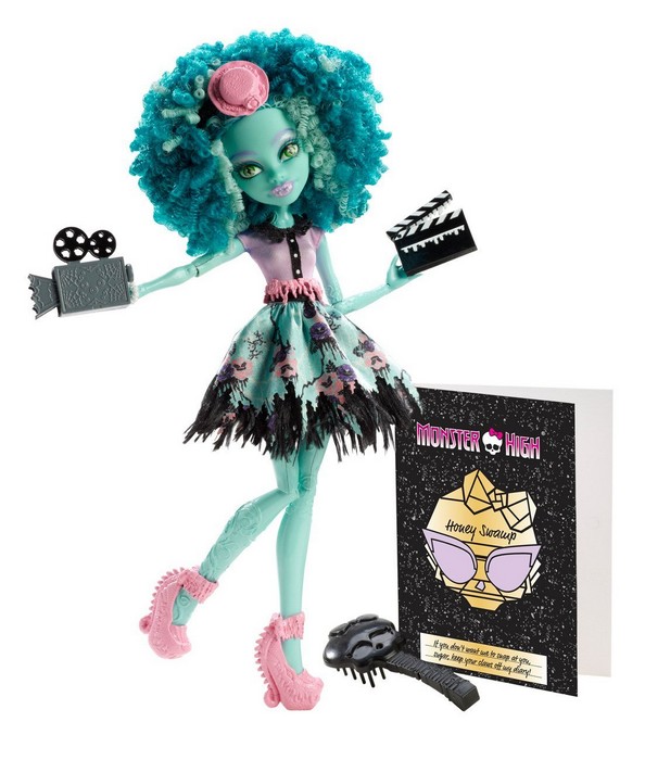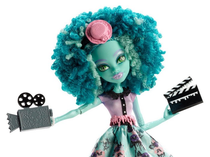 Strach, kamera, akcja! Upiorki dotarły do Hollyduch! Gotowi na pokaz najupiorniejszego stylu? Poznaj nowe potworne gwiazdy: śliczną makijażystkę Viperine Gorgon™, początkującą operatorkę filmową Honey Swamp™, debiutującą aktorkę Elissabat™ oraz Clawdię Wolf™ – inspirującą scenopisarkę. Każda z nich ubrana jest w zabójczą kreację i ma upiorystyczne akcesoria.