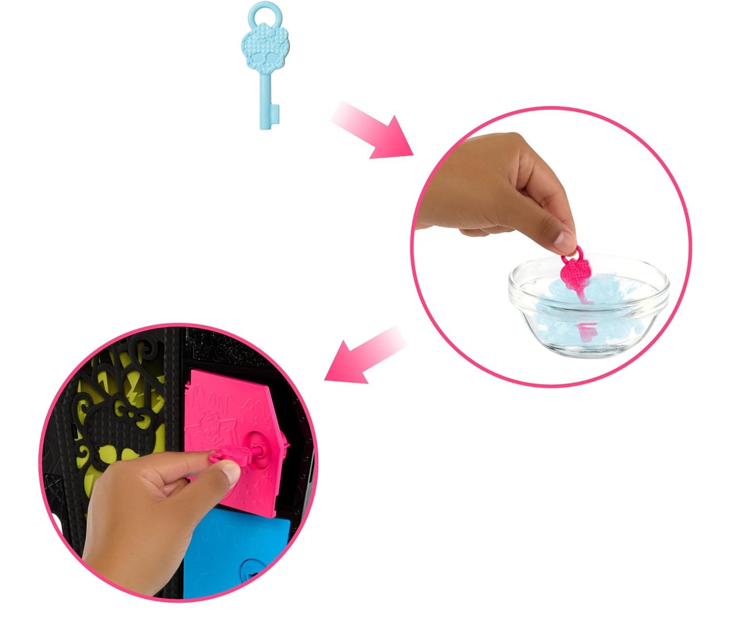 - zmyj kolorową farbkę Color Reveal z każdego klucza, a potem dopasuj go