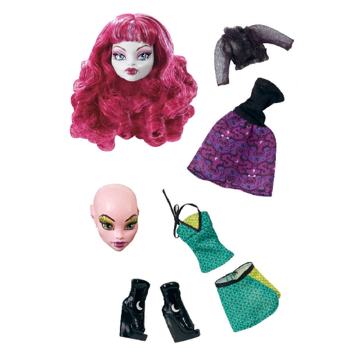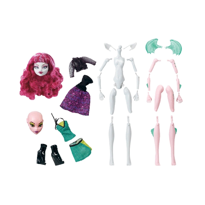 Wymyślaj i twórz swoje własne, najbardziej oryginalne straszydła! Pomoże Ci w tym dodatkowy, unikatowy zestaw z serii Stwórz Własnego Potwora Wilkołak i Smok. W pudełku znajdują się części lalki i akcesoria. Zestawy z tej kolekcji można łączyć miedzy sobą: zamieniaj głowy, dłonie, kości, czułki, peruki co pozwala na stworzenie ponad 250 upiornych kombinacji. Lalki nie stoją samodzielnie.
