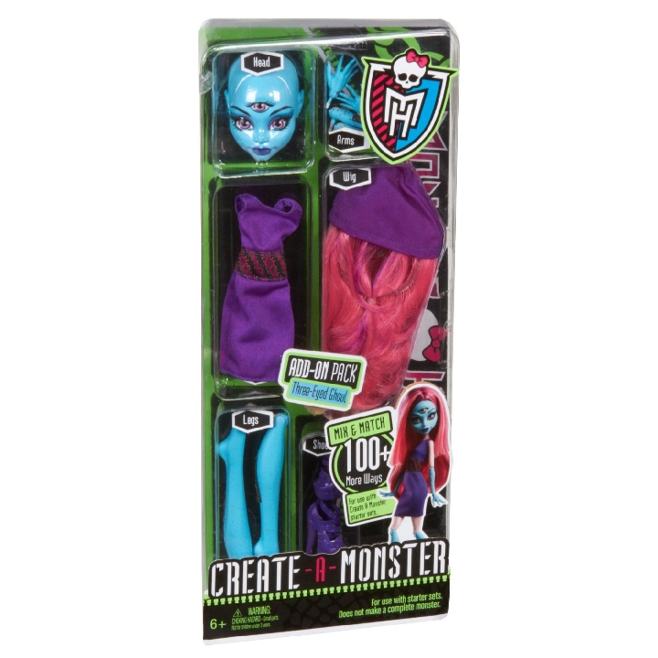 Doskonal się w sztuce tworzenia najbardziej wymyślnych upiorów. Pomogą Ci w tym dodatkowe, unikatowe zestawy z serii Stwórz Własnego Potwora Szkielet, Owad, Upiór z trzecim okiem! Każdy zestaw zawiera części lalki i akcesoria. Zestawy można łączyć miedzy sobą: zamieniaj głowy, dłonie, kości, czułki, peruki i twórz własne unikatowe kombinacje.