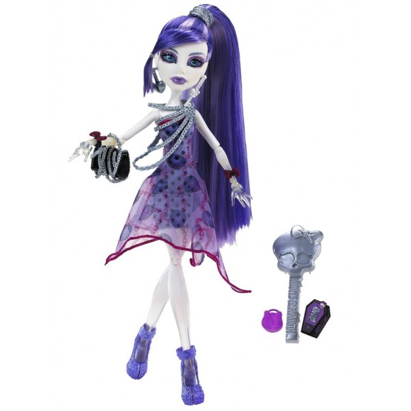 Spectra Vondergeist jest córką ducha i pochodzi z XIX wieku. Dzięki temu, że jest duchem i może przenikać przez ściany oraz latać, posiada niesamowitą zdolność do podsłuchiwania, przez co jest najlepiej poinformowaną potworką w całej szkole. Teraz razem ze swoimi przyjaciółkami Spectra szykuje się na zabójczą imprezę taneczną, na której będą królowały straszne kreacje! Warto zebrać całą kolekcję wystrojonych przyjaciółek! Lalki nie stoją samodzielnie.