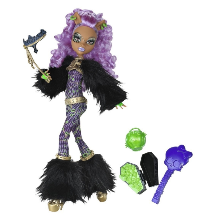Clawdeen Wolf to córka Wilkołaka i jedna z najbardziej oryginalnych dziewczyn w Monster High! Uwielbia modnie się ubierać, a do tego jest śmiała, odważna i drapieżna co na innych działa nieco onieśmielająco. W tym roku postanowiła razem z innymi uczniami straszyceum wspólnie świętować Halloween. Specjalnie na tą okazję Clawdeen ubrała zupełnie nowe, upiorne przebranie z długą, czarną sierścią! Lalka ma ruchome ręce i nogi, można ją ustawić w wielu pozach. Lalki nie stoją samodzielnie.
