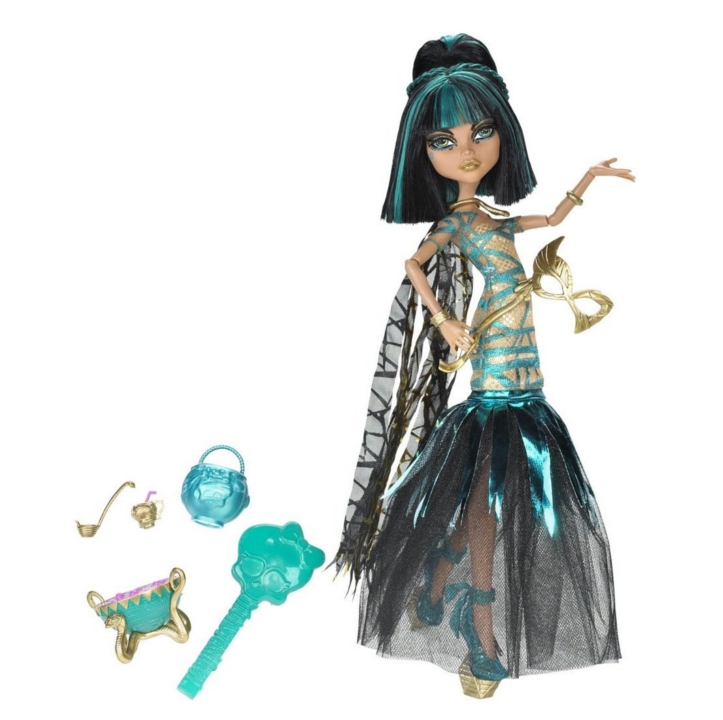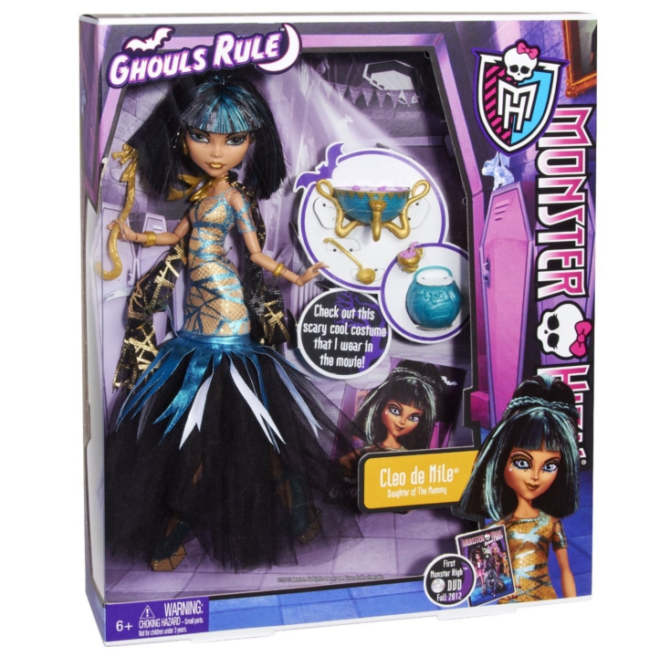 Cleo de Nile jest córką Mumii! Pupilkiem Cleo De Nile jest wąż kobra Hissette. Cleo charakteryzuje styl oparty na oryginalnych strojach z bandaży oraz złotych dodatkach. W tym roku postanowiła razem z innymi uczniami straszyceum wspólnie świętować Halloween. Specjalnie na tą okazję Cleo ubrała zupełnie nowe, upiorne przebranie! Lalka ma ruchome ręce i nogi, można ją ustawić w wielu pozach. Lalki nie stoją samodzielnie.
