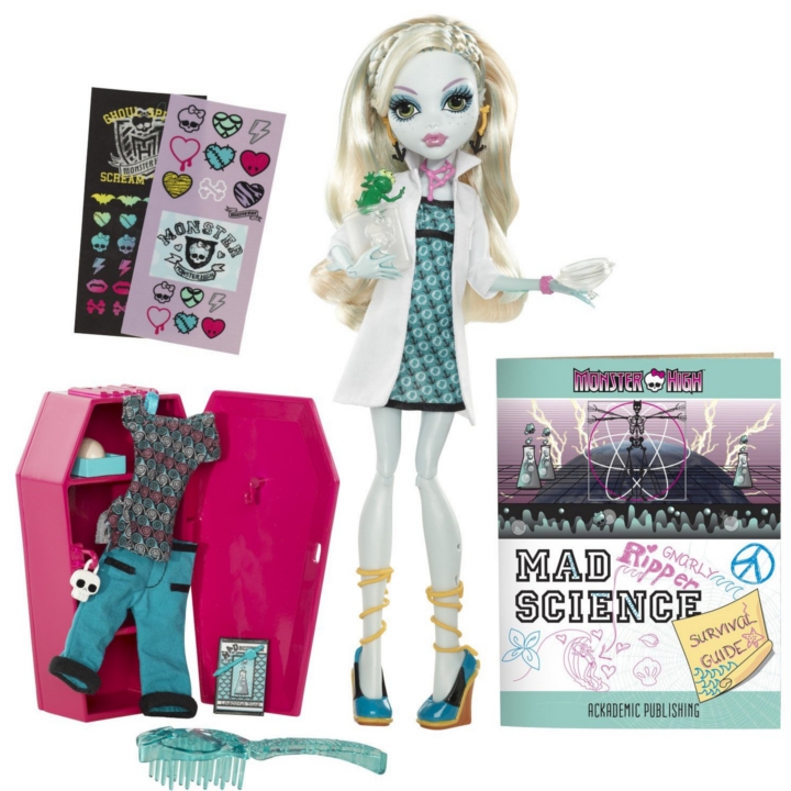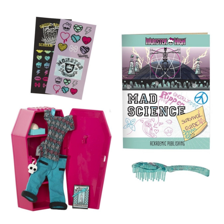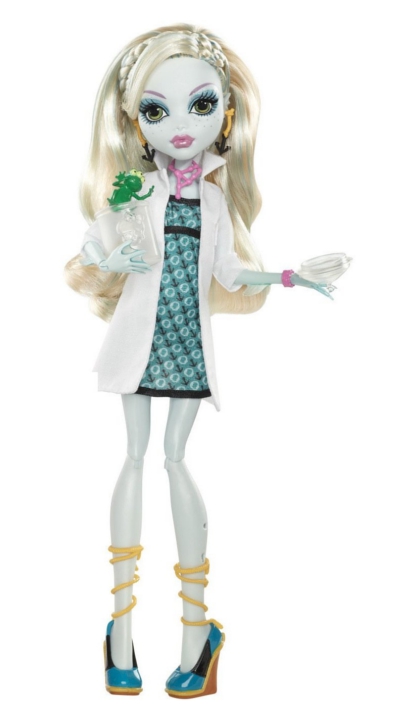Lagoona Blue W2560 udaje się na upiorną lekcję anatomii! Każda lalka z serii Upiorne Lekcje ma w komplecie ubranko na zmianę, szafkę z naklejkami oraz przewodnik ucznia, z którego dziewczynki – podobnie jak uczennice straszyceum – mogą dowiedzieć się więcej o życiu w Monster High! . Lalki z tej serii mają ruchome ręce i nogi, dlatego można je ustawić w wielu pozach. Lalki nie stoją samodzielnie.