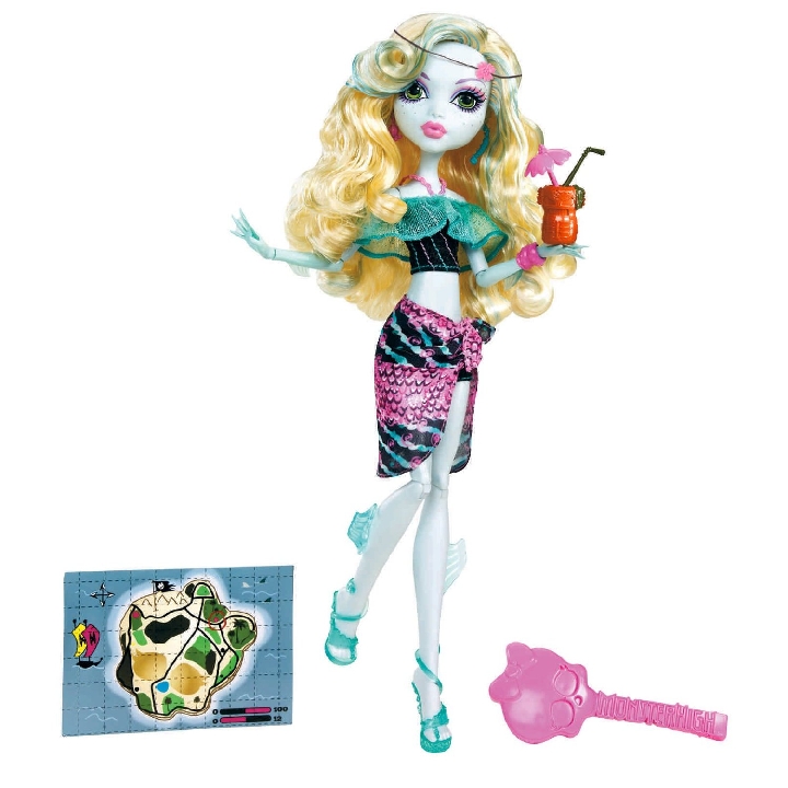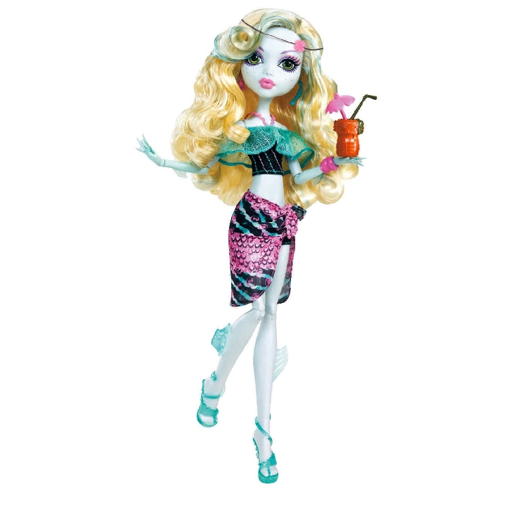 Lagoona Blue to córka potwora morskiego. Potrafi zmieniać wygląd - najbardziej lubi robić to na imprezach aby zaskoczyć wszystkich zebranych. W serii Upiorni Plażowicze ma możliwość pochwalenia się swoim niecodziennym darem podczas imprezy nad morzem! Ubrana w strój plażowy z drinkiem w ręku jest gotowa na zabawę. Lalki z tej serii mają ruchome ręce i nogi, dlatego można je ustawić w wielu pozach. Lalki nie stoją samodzielnie.