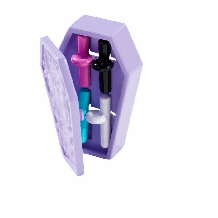 Poszerz grono przyjaciół z Monster High™ o nowe postacie i swoje ulubione upiory! Każda lalka ma ruchome ręce i nogi, dlatego można ją ustawić w wielu upiornych pozach! W każdym zestawie: lalka z podstawką, ulubiony zwierzak, pamiętnik opisujący kilka dni z życia danego bohatera, potworna szczotka do włosów lub inne akcesoria.