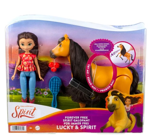 Zestaw Lalka Lucky i koń Spirit został stworzony przez docenianą za wysoką jakość produktów markę Mattel. Zabawka ta powstała na podstawie animowanego serialu dla dzieci po tytułem Mustang: Duch wolności (ang. Spirit: Riding Free). Serial jest kontynuacją kinowej animacji studia DreamWorks pod tytułem Mustang z Dzikiej Doliny (ang. Spirit: Stallion of the Cimarron).