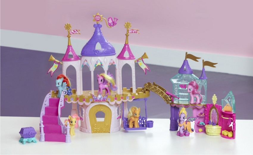 Zbuduj świat My Little Pony we własnym domu! W tym niezwykłym pałacu dziewczynki mogą odgrywać sceny z eksytującej koronacji Księżniczki Twilight Sparkle i przebierać ją odpowiednio do sytuacji! W zestawie Księżniczka Twilight Sparkle z poruszającymi ksrzydłami! Dla jeszcze większe zabawy połącz Kryształowy Pałac z Zamkiem Królewskim i swtórz prawdziwe Królestwo (sprzedawane oddzielnie).