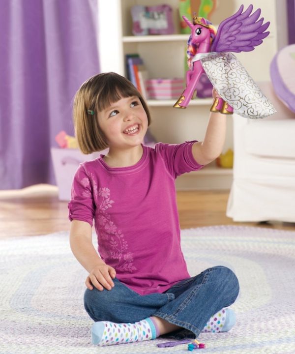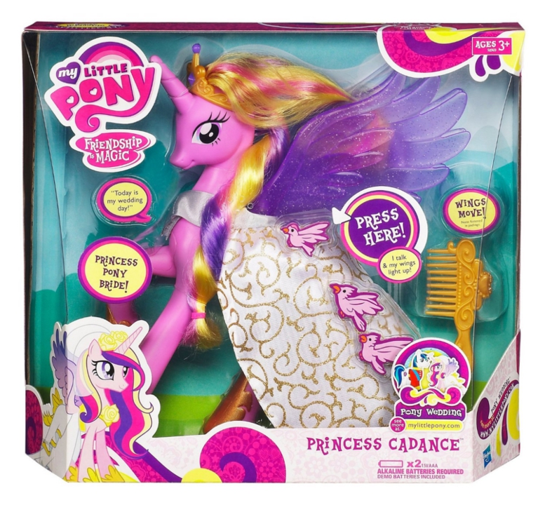 Księżniczka Cadence to uroczy jednorożec. Jest gotowa na swój ślub – w pięknej weselnej sukni i długim welonie. Posiada długą kolorową grzywę i ogon - idealne do zabawy w czesanie. Dodatkowo porusza skrzydłami, ma światełka i ślubne akcesoria.