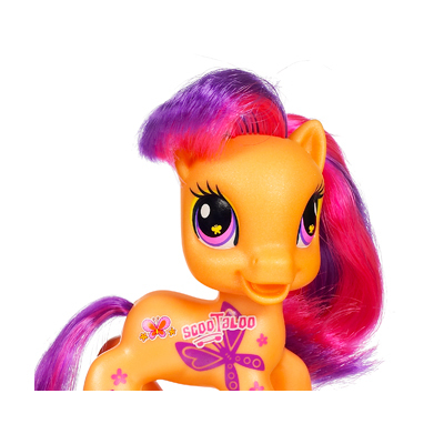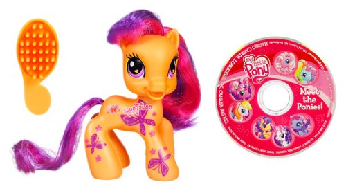 Scootaloo to wspaniały kucyk i magiczny przyjaciel każdej dziewczynki. Posiada bardzo długie włosy co daje możliwość niekończącej się zabawy. By można było w sprawny sposób zmieniać stylizacje fryzur Scootaloo w pudełku jest specjalna szczotka do czesania przepięknej długiej grzywy. Dodatkowo w zestawie znajduje się płyta DVD z bajką My Little Pony!