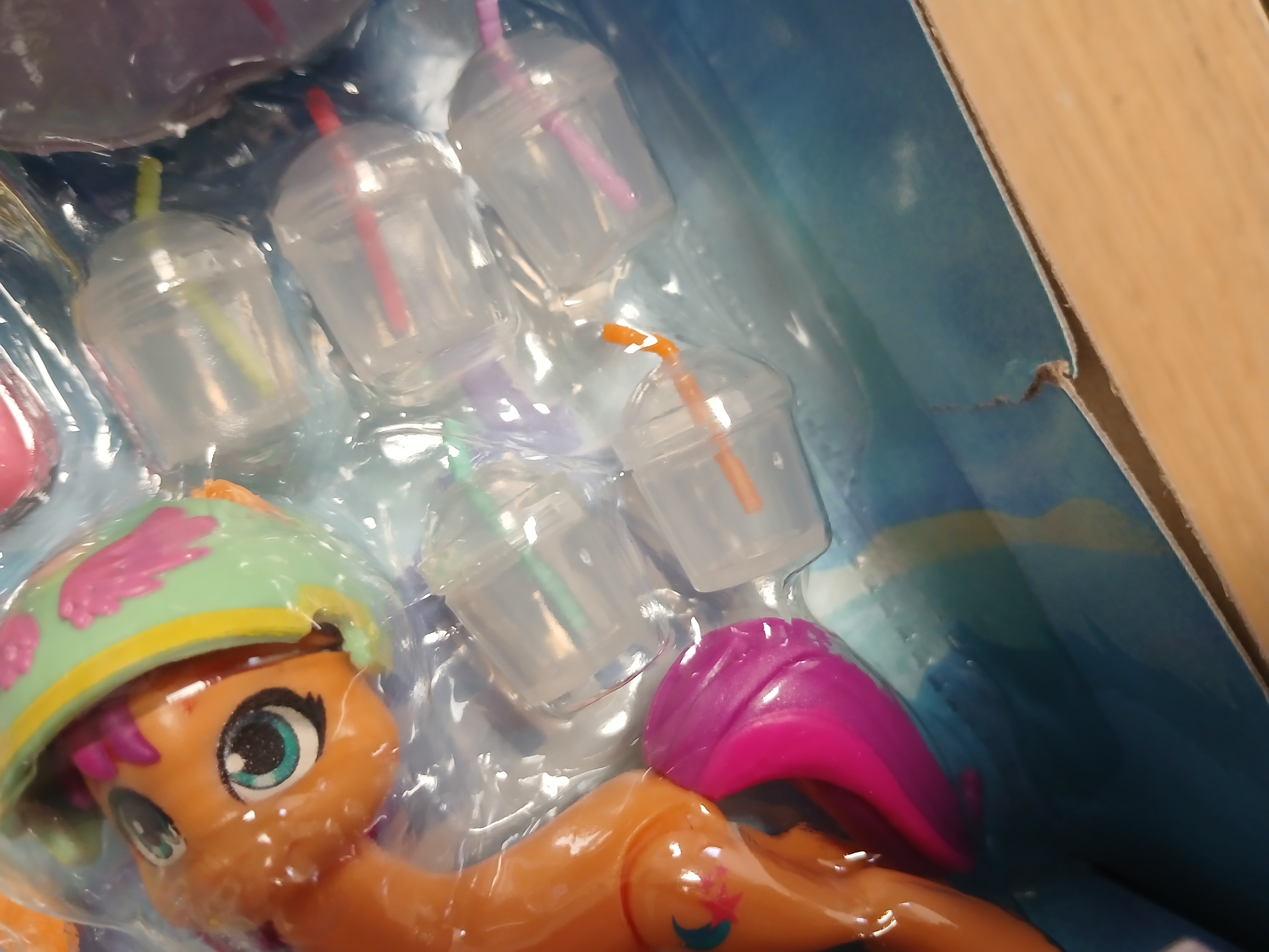 Sunny jest ciekawska, żądna przygód i zdeterminowana, by zmienić świat na lepsze. Sunny otwarła swój mały mobilny sklepik z napojami. Dzięki dołączonym do zestawu łyżworolkom Sunny dotrze z napojem do każdej spragnionej osoby. W zestawie znajduje się ponad 25 akcesoriów, w tym wózek do zimnych napojów, mikser, kubki, owoce i warzywa oraz 2 opakowania masy plastycznej do robienia drinków. Z takim zestawem nie można się nudzić!