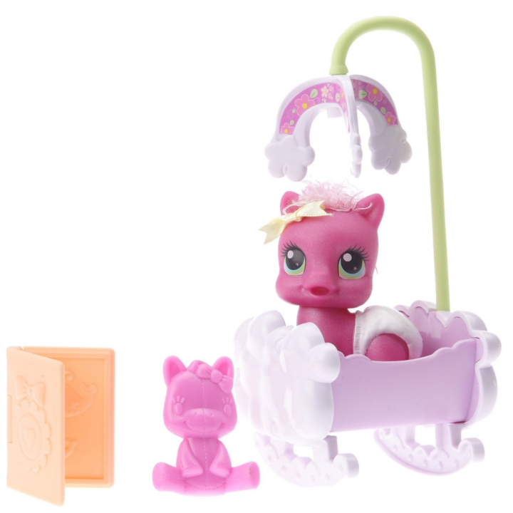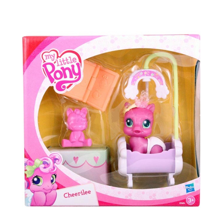 Nowonarodzony kucyk Cheerilee jest gotowy do spania. Połóż tego słodkiego kucyka w jego łóżeczku, podaj misia i przeczytaj bajkę. By pomóc mu zasnąć dziewczynka może zakołysać łóżeczkiem oraz obracać kolorową zawieszką znajdującą się nad kołyską. W takich warunkach malutki kucyk Cheerilee z łatwością będzie śnił słodkie sny!