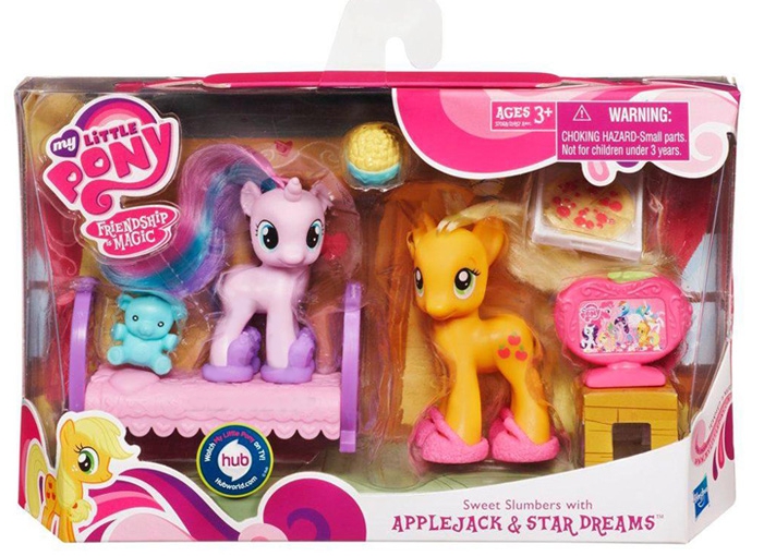 My Little Pony Opowieści Kucyków Applejack i Star Dreams 37068 to zestaw reprezentujący serię przedstawiającą scenki z życia kucyków. Każdy zestaw to inna opowieść – zawsze jest coś nowego do odkrycia w kucykowym świecie. Applejack i Star Dreams uwielbiają długie wspólne wieczory. Można przeżyć wiele niesamowitej zabawy i przyjemności zanim pójdzie się spać. Teraz i Ty możesz spędzić fantastyczną noc ze swoimi małymi przyjaciółmi oglądając telewizję i zajadając przysmaki, a potem zdjąć mięciutkie kapciuszki i położyć sie spać tuląc swojego ukochanego misia.