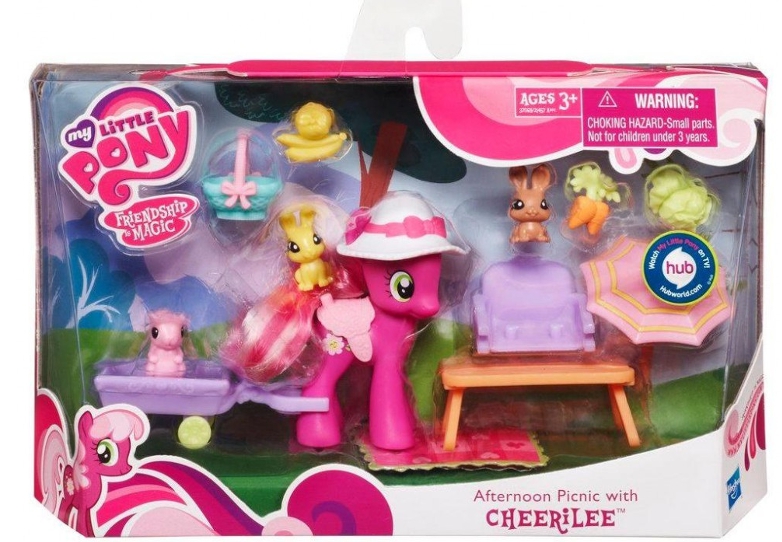 My Little Pony Opowieści Kucyków Cheerilee 37069 to zestaw reprezentujący serię przedstawiającą scenki z życia kucyków. Każdy zestaw to inna opowieść – zawsze jest coś nowego do odkrycia w kucykowym świecie. Cheerelie idzie na piknik do parku. Zaprosiła również wszystkich swoich maleńkich przyjaciół, aby jej towarzyszyli i zabrała ze sobą liczne smakołyki. Ty też możesz do niej dołączyć! Włóż sałatę i marchewkę do koszyka piknikowego, rozłóż stół, krzesełka i parasol, aby cudownie spędzić popołudnie poza domem. Przyczep kucykowi wagonik, nałóż kapelusik na głowę i małego króliczka na grzbiet i ruszajcie w drogę. To będzie najlepszy piknik w życiu!